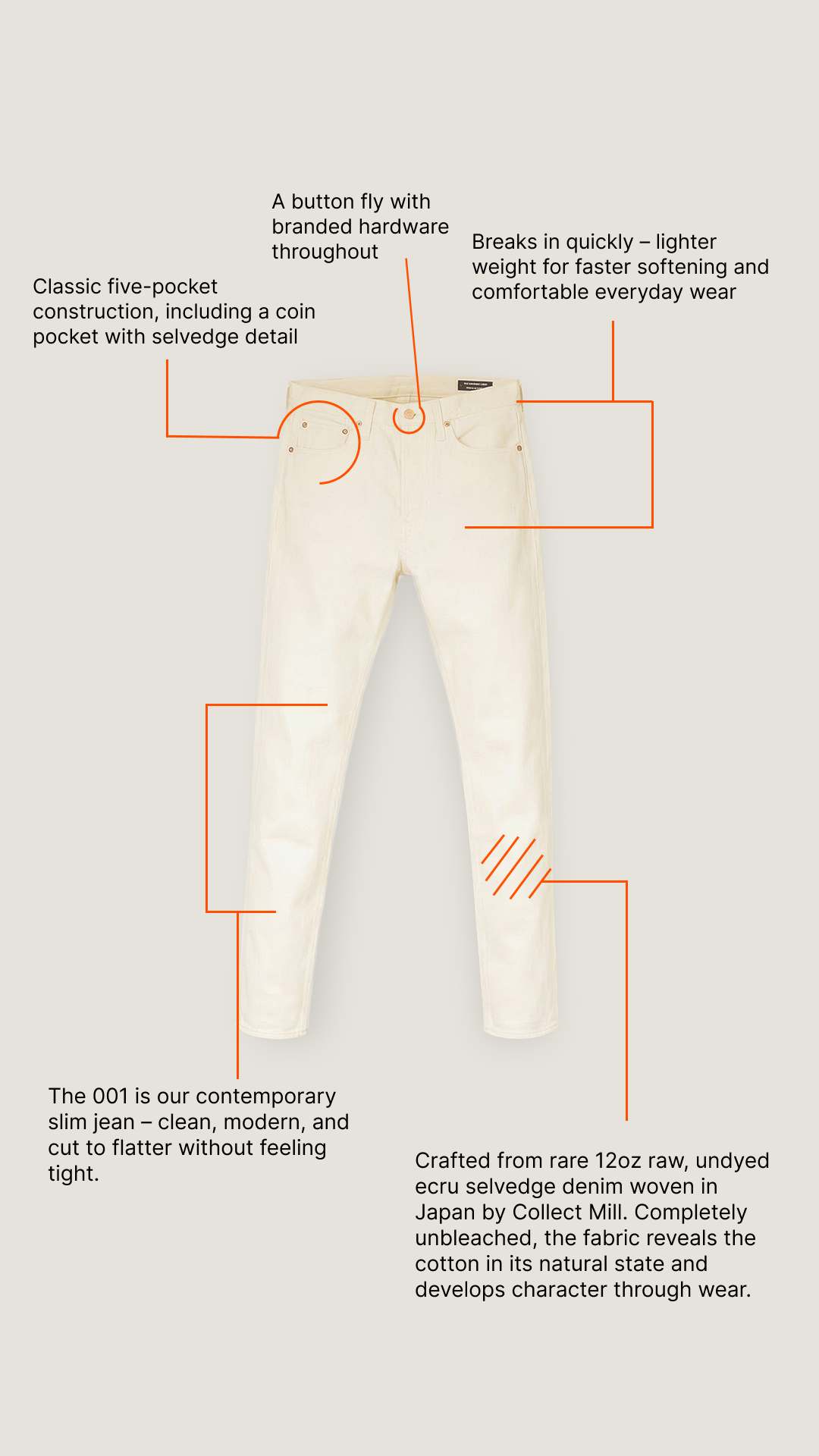 Ecru Slim Fit 001 Raw Selvedge Jeans