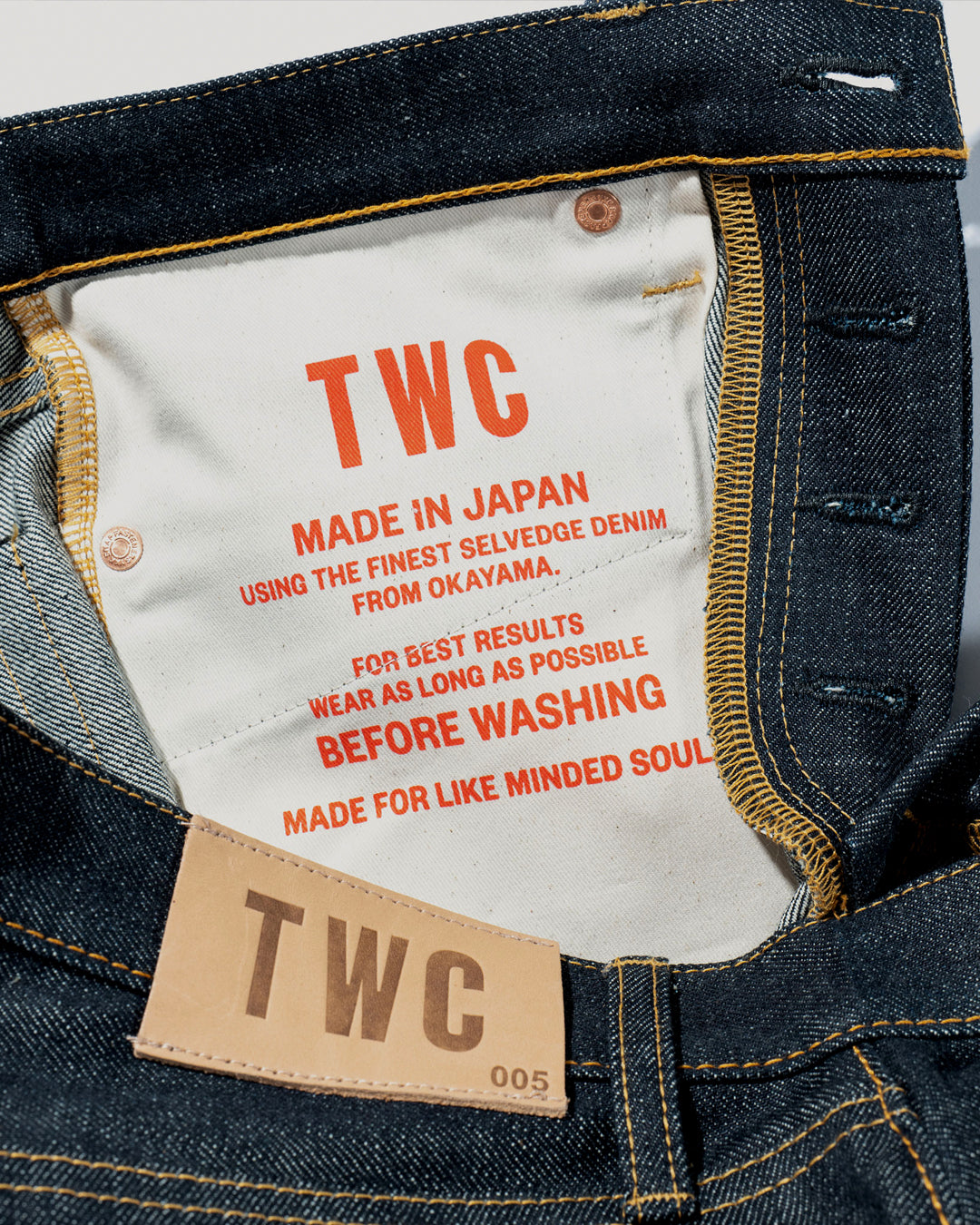 We use best-in-class Japanese selvedge denim from Okayama, woven on vintage looms by specialist mills. Each pair is cut and sewn in Okayama for consistency, then finished with the hallmarks of true denim craft.