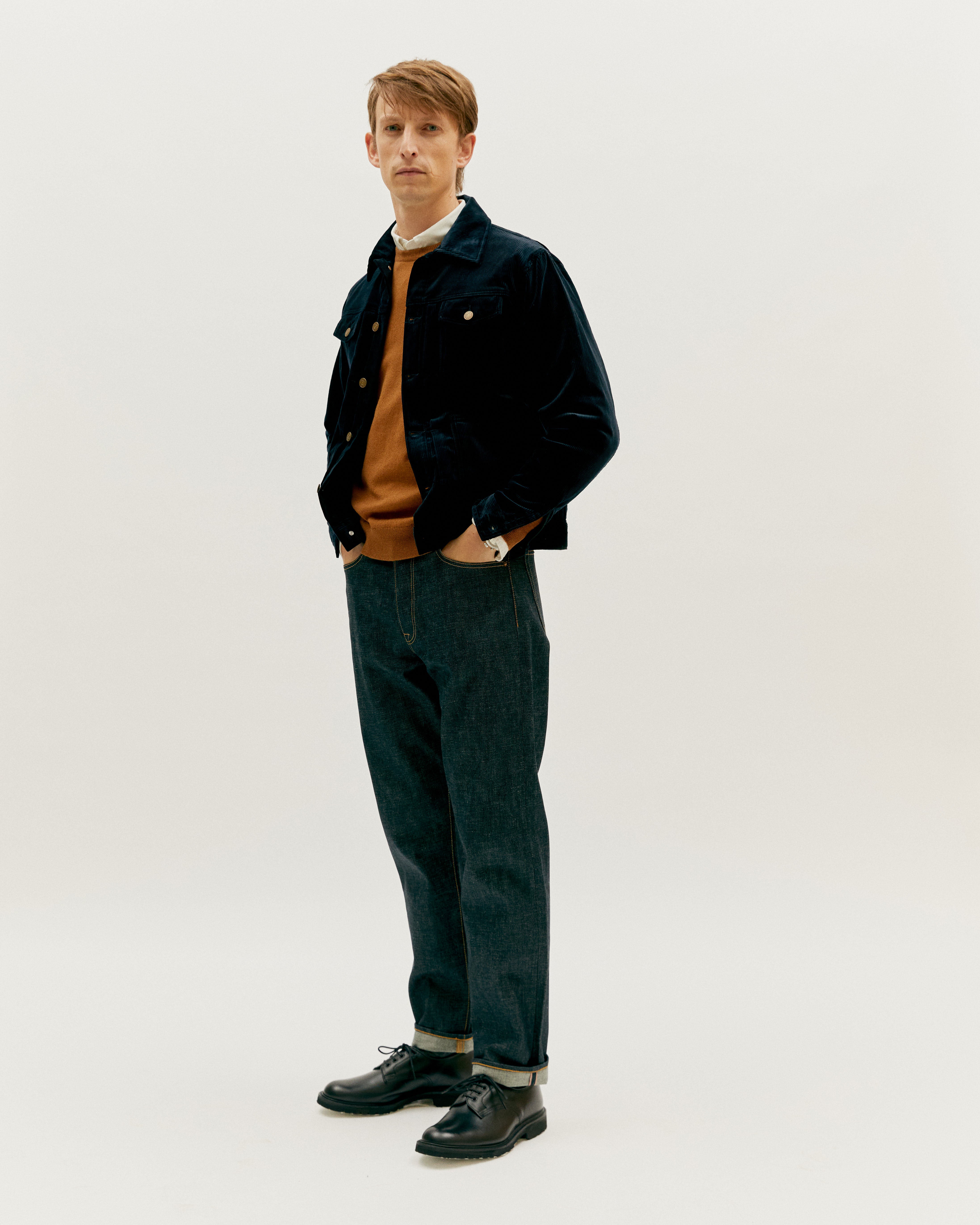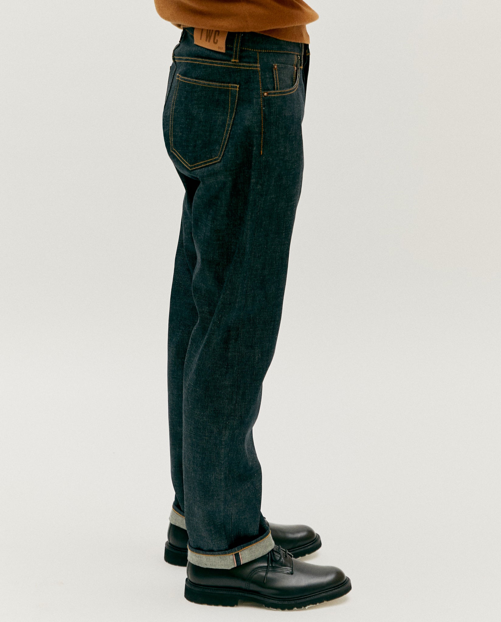 Made from narrow loom 13.5oz denim and woven by the famed Japanese Collect mill. Our relaxed fit 007 jean is a comfortable and roomy fit.