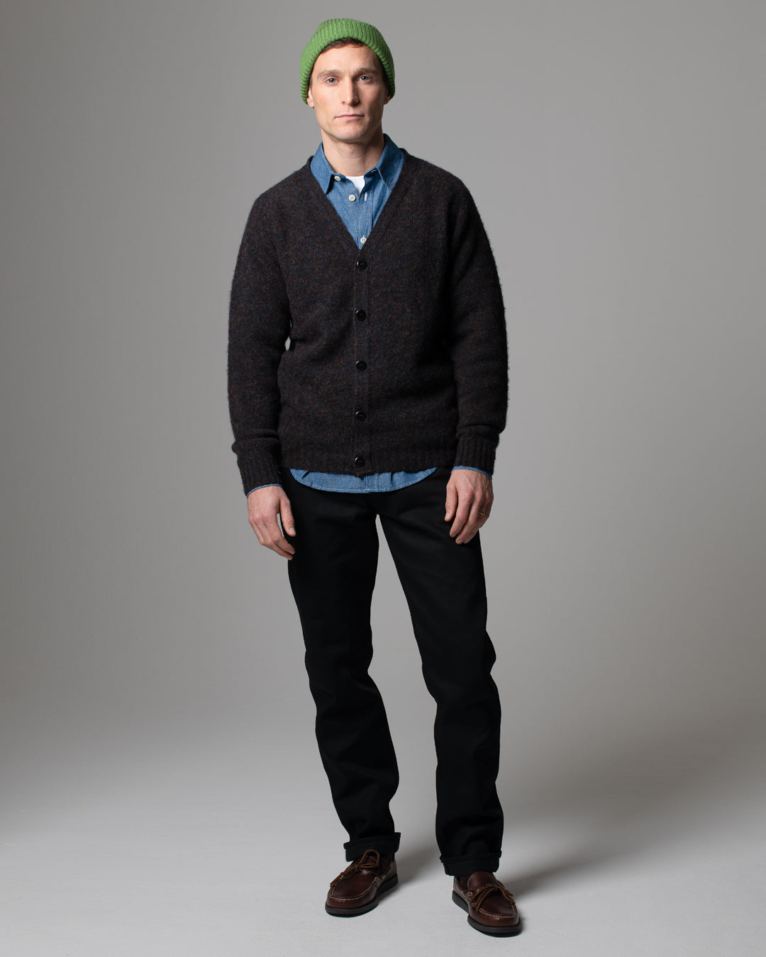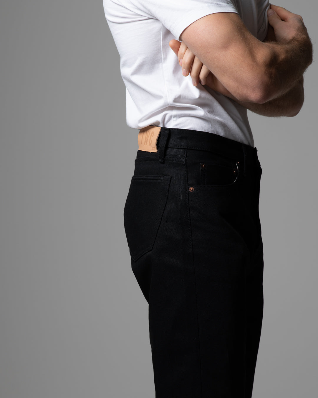 This rare black raw denim is woven on narrow looms by the esteemed Collect Mill in Japan. At 13.5oz, it delivers a substantial, authentic feel-firm and crisp at first, softening gradually as it moulds to your body. Over time, the untreated black warp and weft will develop a deep, personal patina, fading subtly in high-wear areas and creating a completely individual pair.