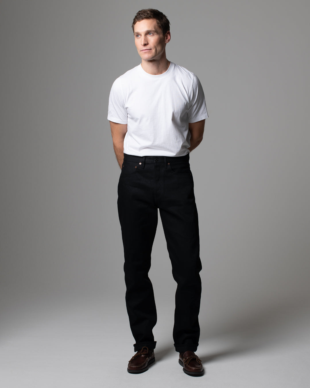 Back by popular demand, our cult 007 black raw denim returns - a reissue of the much-loved colour first launched in 2020, now crafted in an exclusive 13.5oz selvedge denim from Japan. Relaxed through the leg with clean lines, the 007 fit sits higher on the waist, offering exceptional comfort and a refined, modern silhouette built for everyday wear.