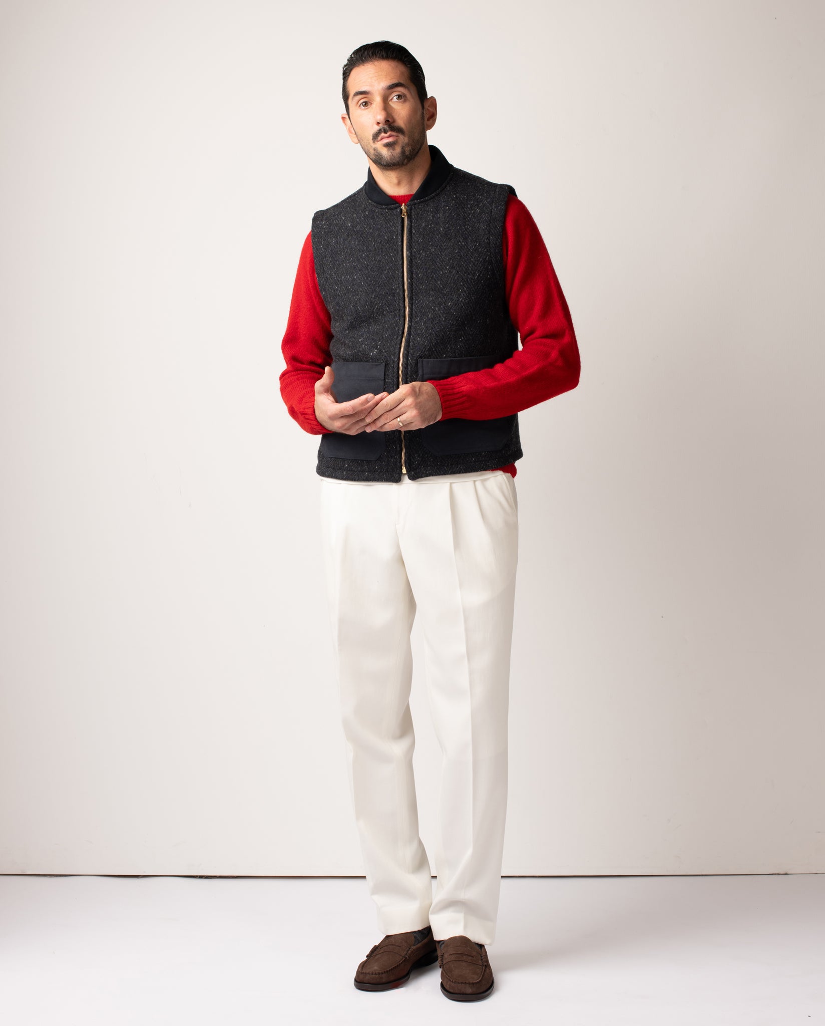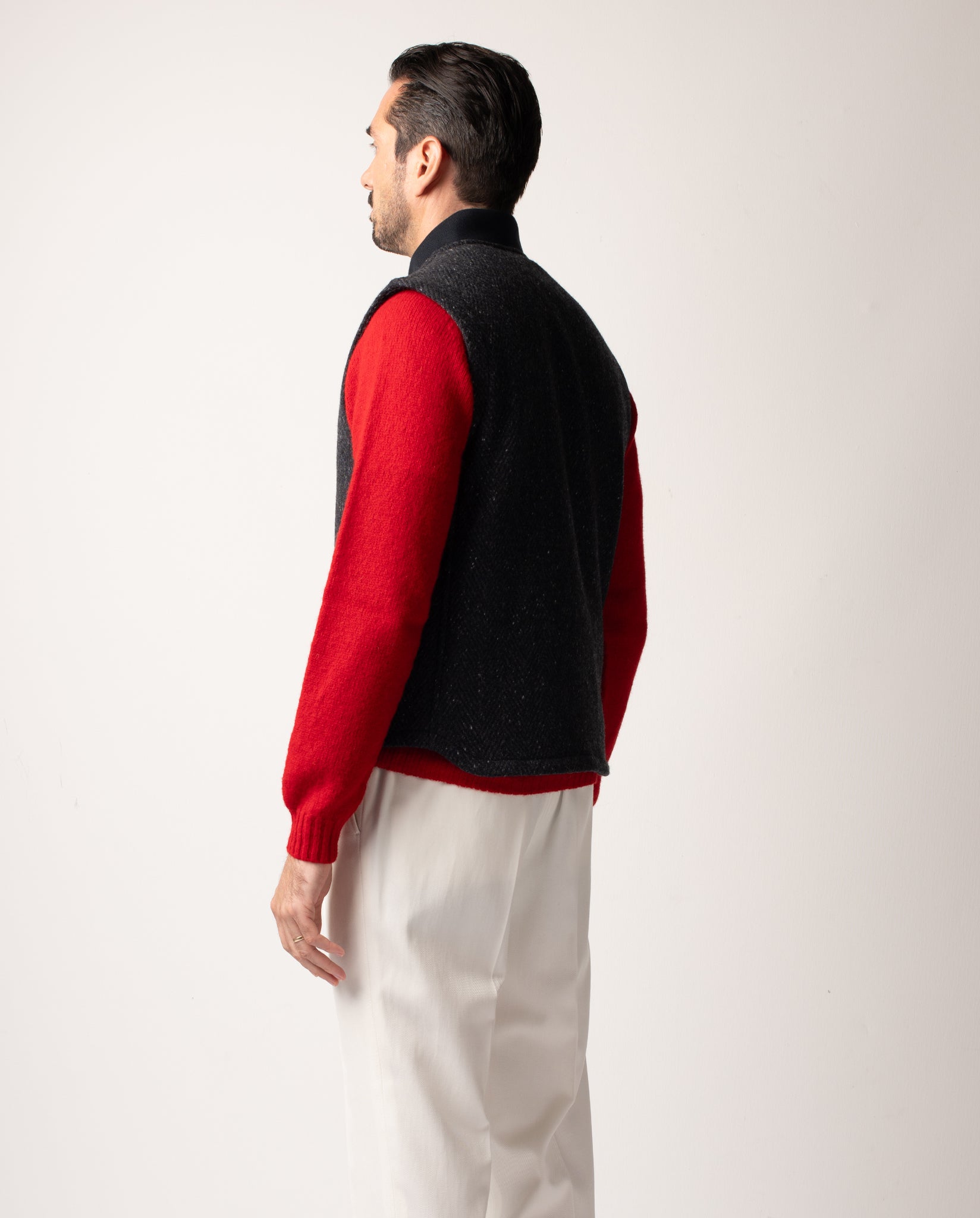 Introducing the Aldworth Gilet in a charcoal Donegal wool - a characterful, textured interpret...