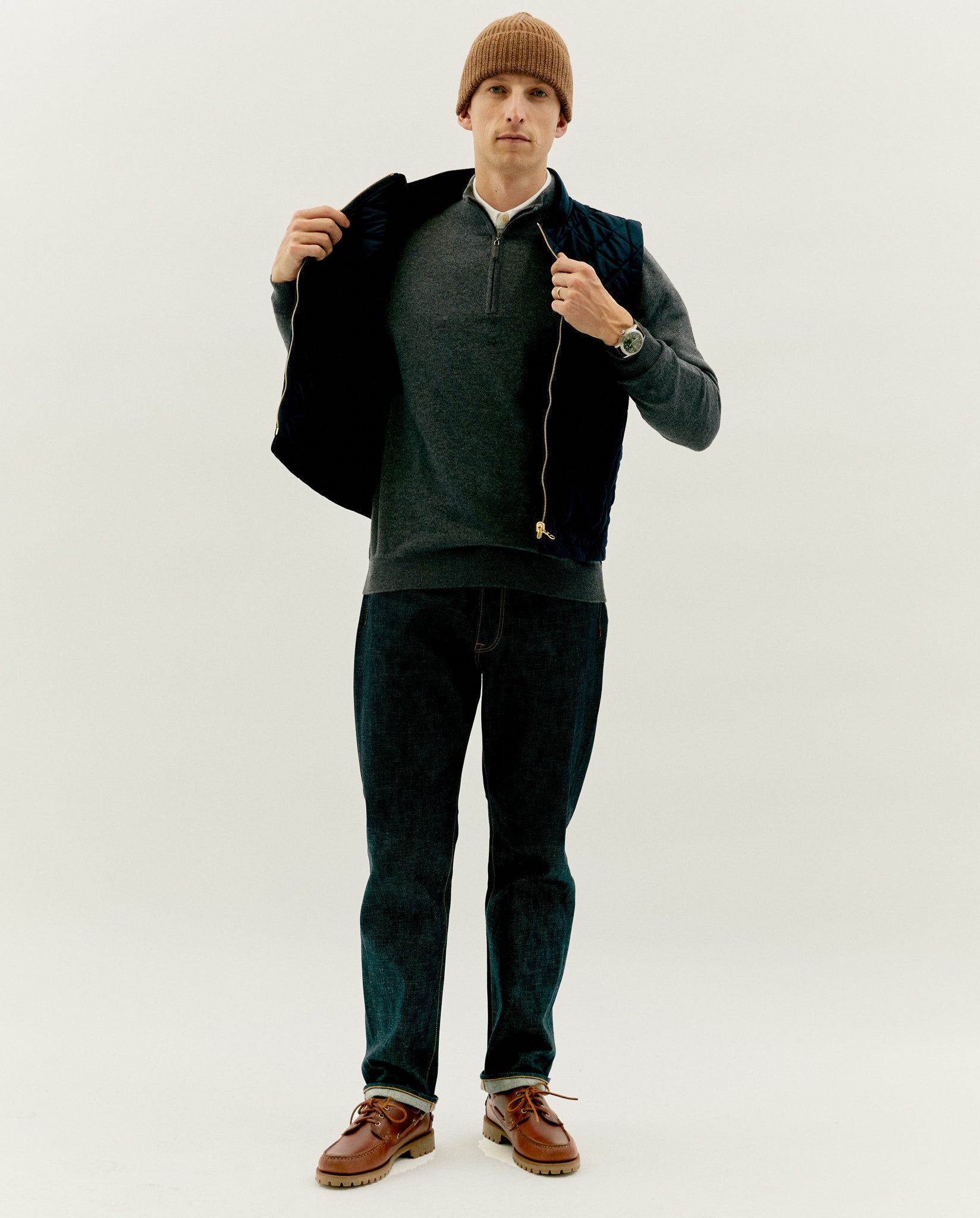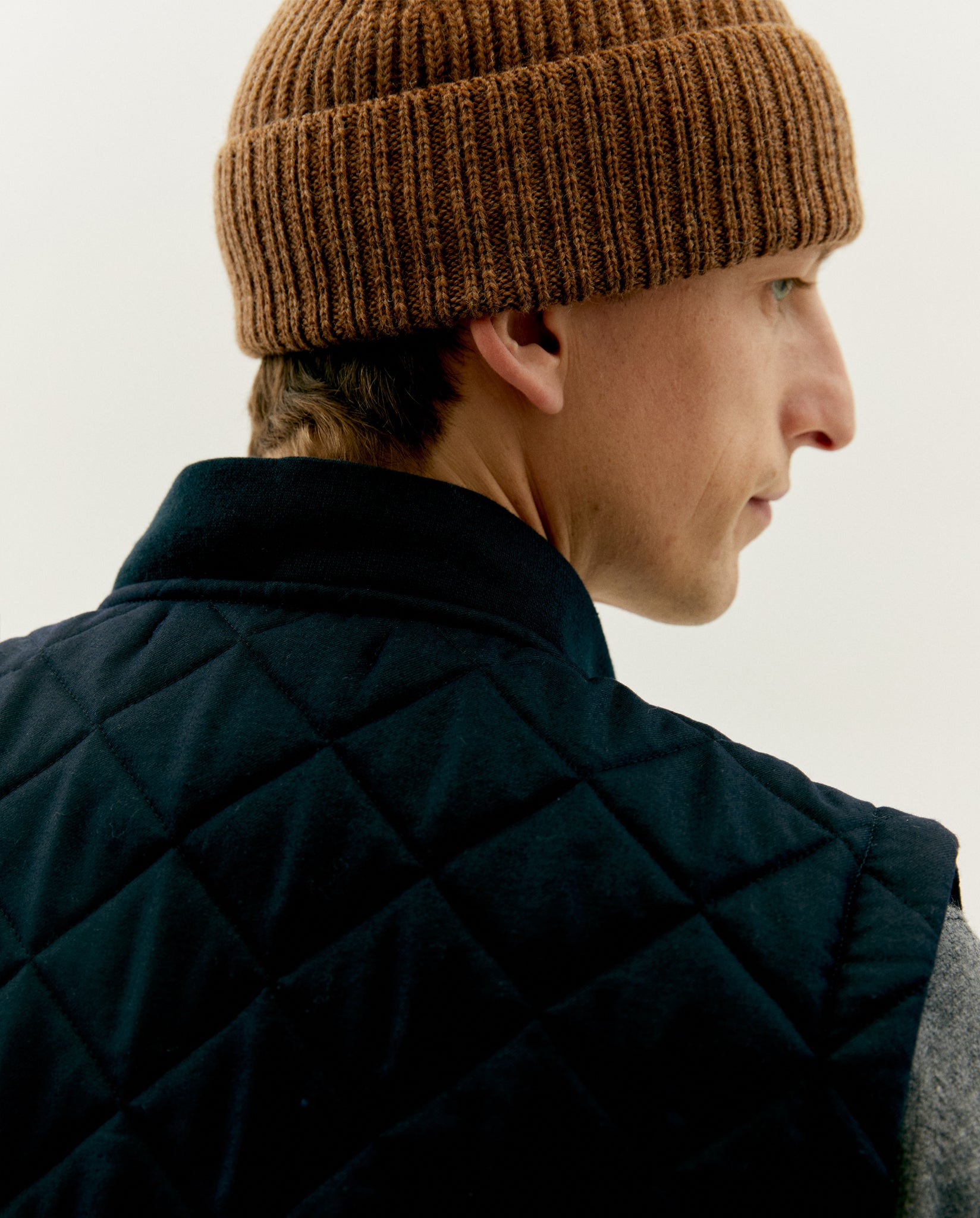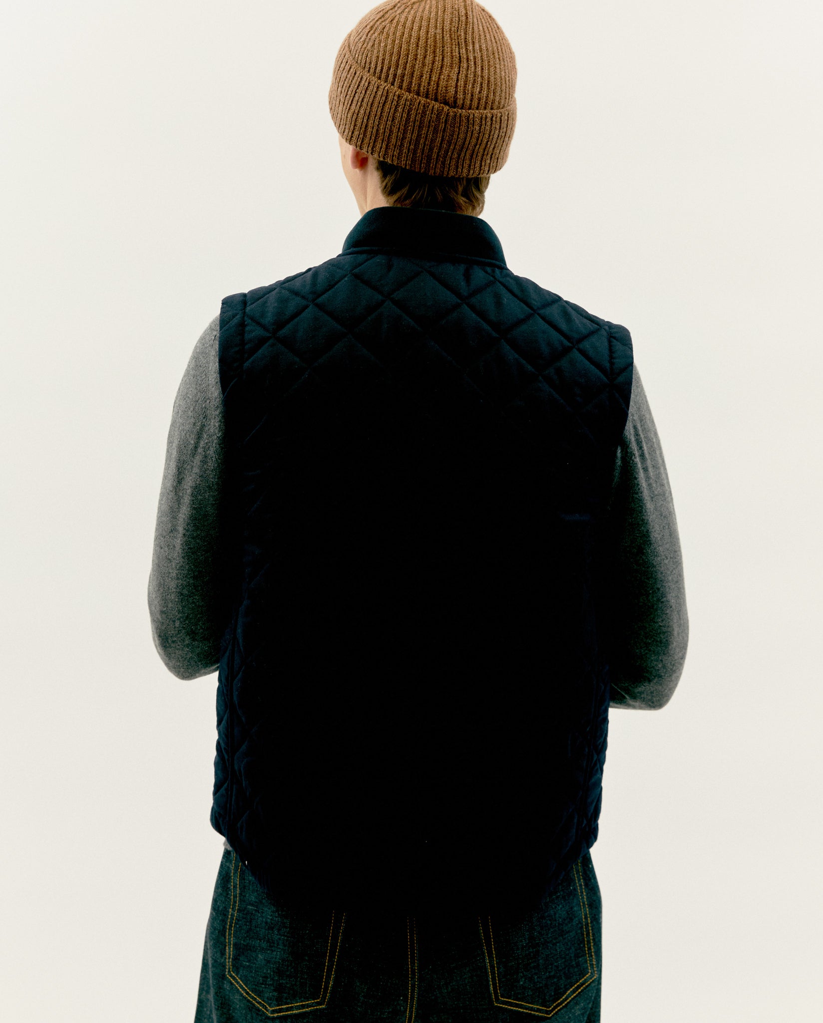 ALDWORTH QUILTED GILET IN NAVY WOOL FLANNEL