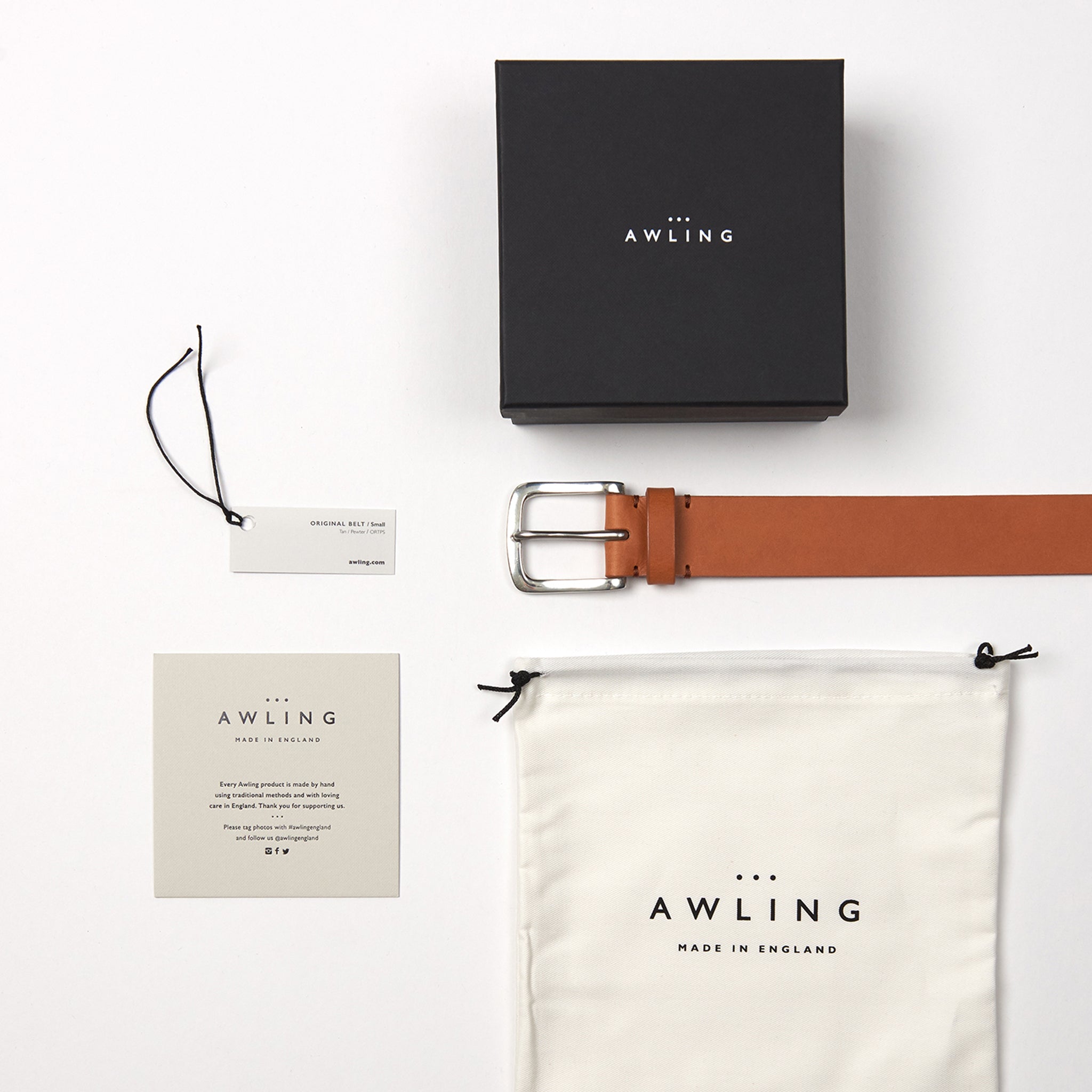 Please note, Awling belts are sized accurately. If you are unsure of your size either measure an existing belt (from the point where the strap folds over the buckle to the hole you use most frequently) or measure your waist through the belt loops of jeans or trousers.