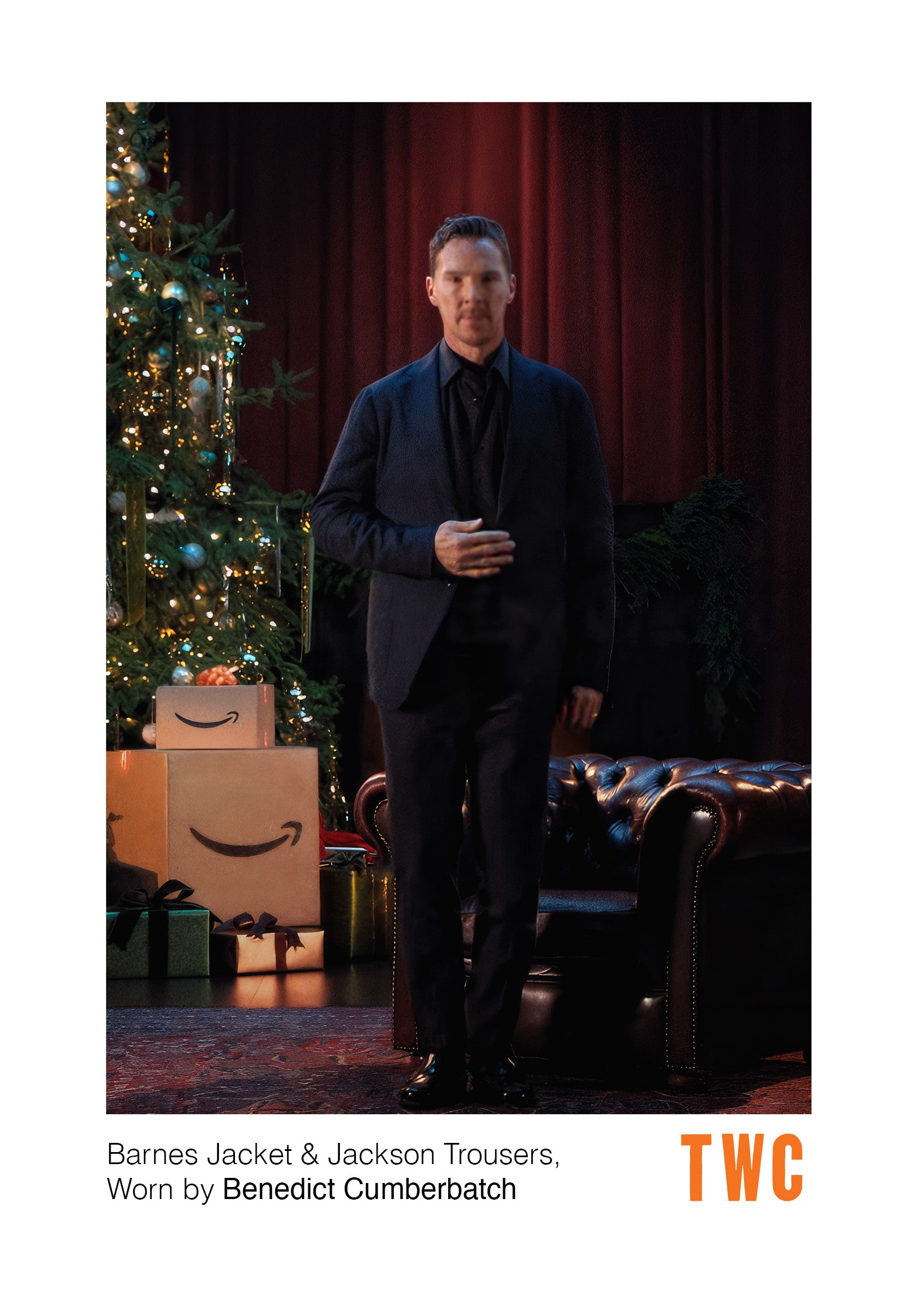 The Workers Club is pleased to confirm that Benedict Cumberbatch appears in a TWC suit for Amazon’s 2025 Black Friday and pre-Christmas advertising series, “5-Star Theatre.” In the campaign, the acclaimed actor delivers dramatic readings of real five-star Amazon customer reviews with a witty, theatrical twist.
