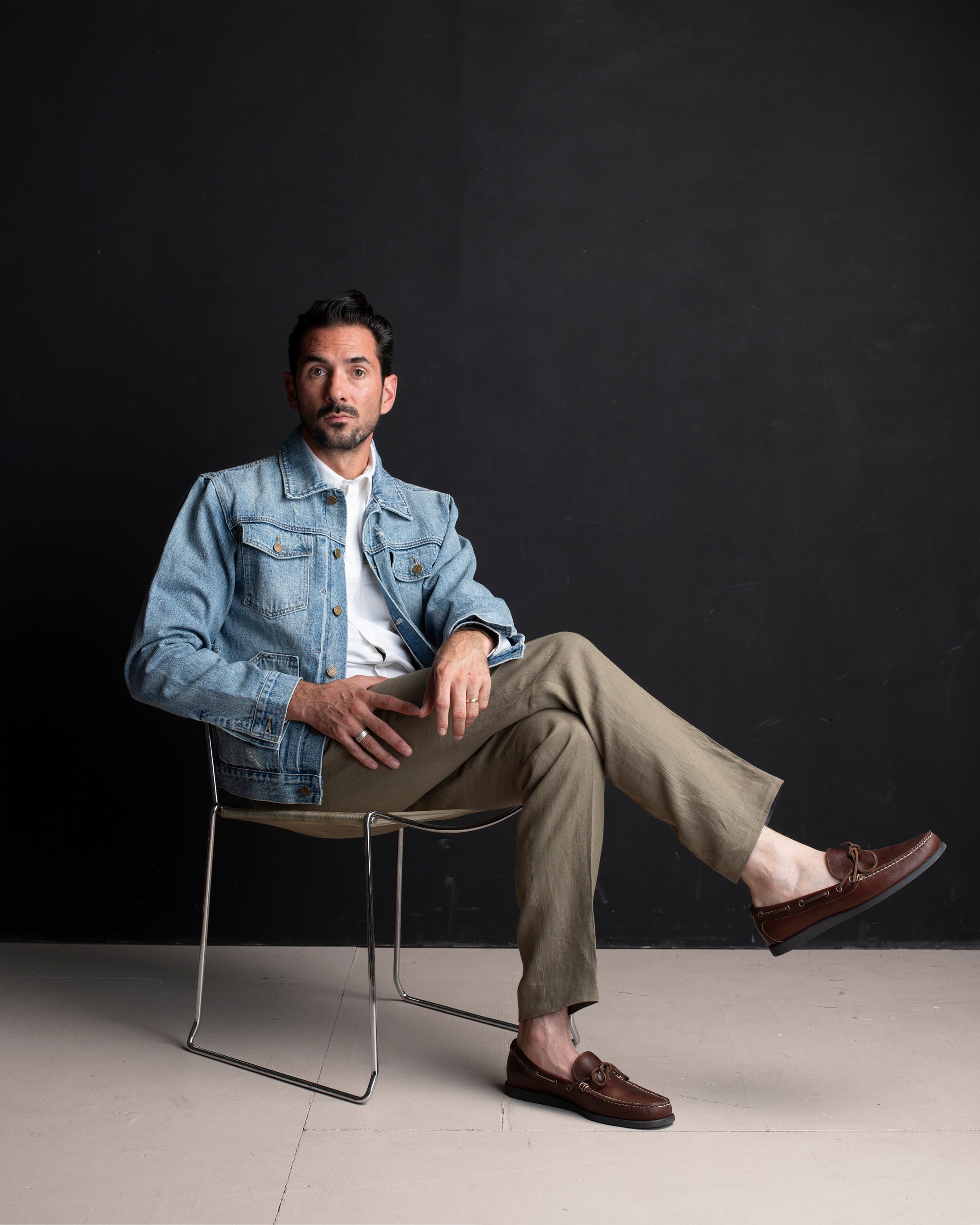 Raw denim rewards patience. Wear your denim as long as possible before the first wash to let the fabric soften and mould to your body – the result is a patina that's entirely yours. Our fits are precisely graded; consult the size guide or get in touch for tailored advice – we're happy to help.