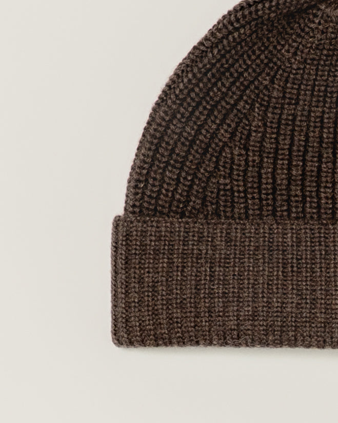Introducing our Brown Knitted Wool Beanie, a winter essential made in Scotland. Crafted with care and precision, this beanie stands out with its timeless tuck rib knit design. Make a Statement: Elevate your winter style with our Brown Knitted Beanie, where luxury meets warmth,