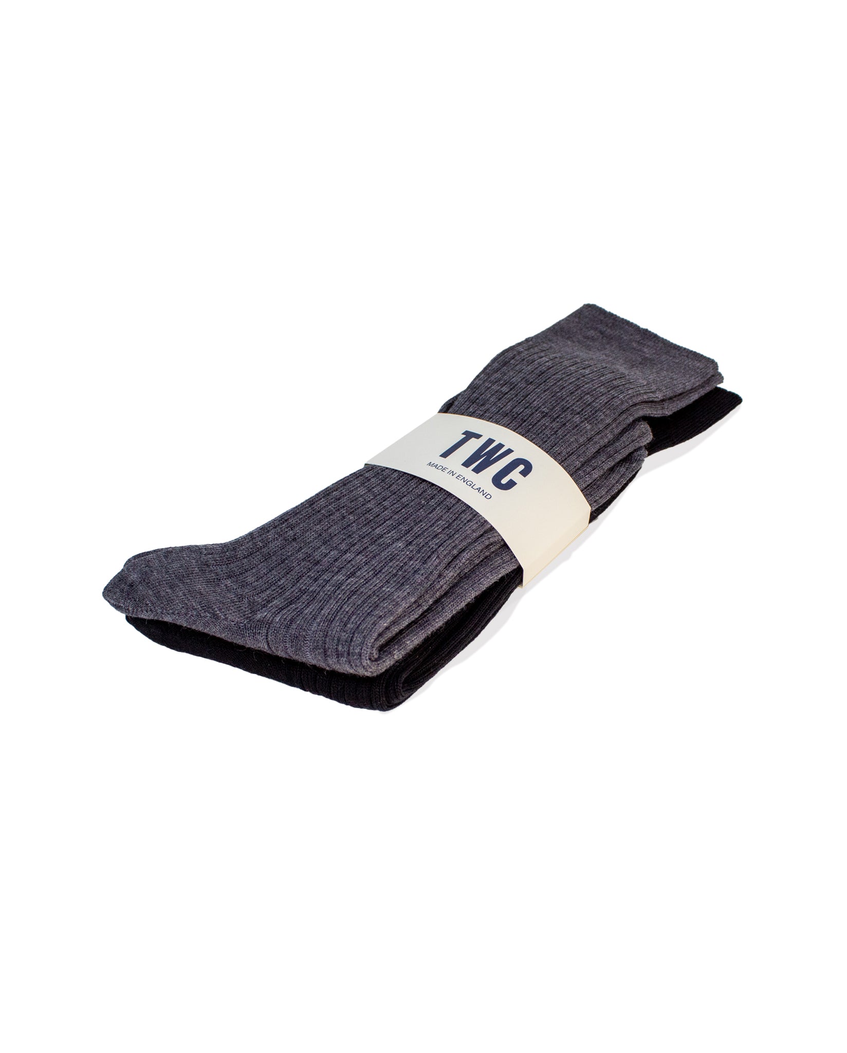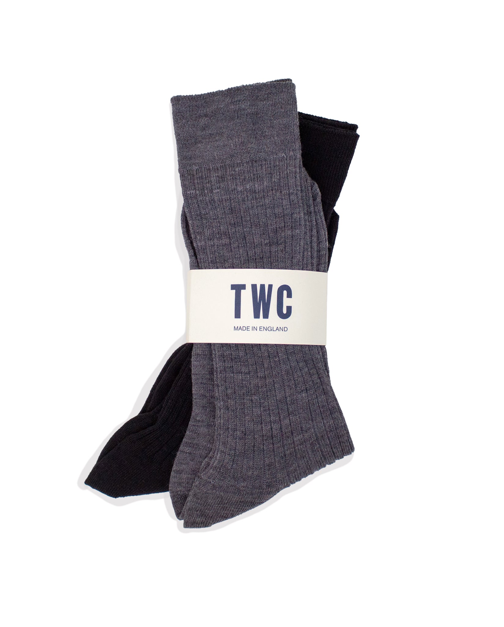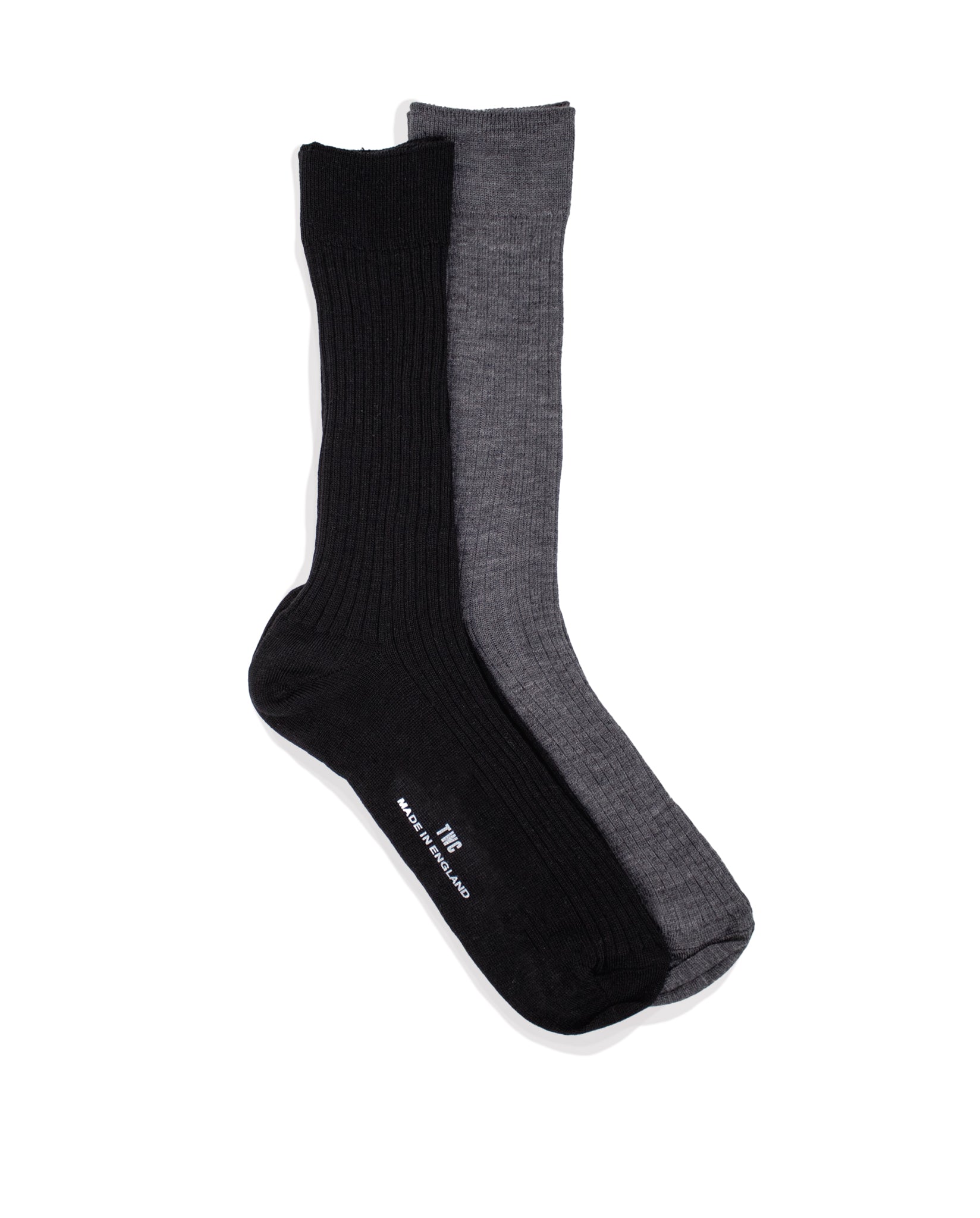 FINE MERINO WOOL SOCK 2 PACK IN BLACK & CHARCOAL