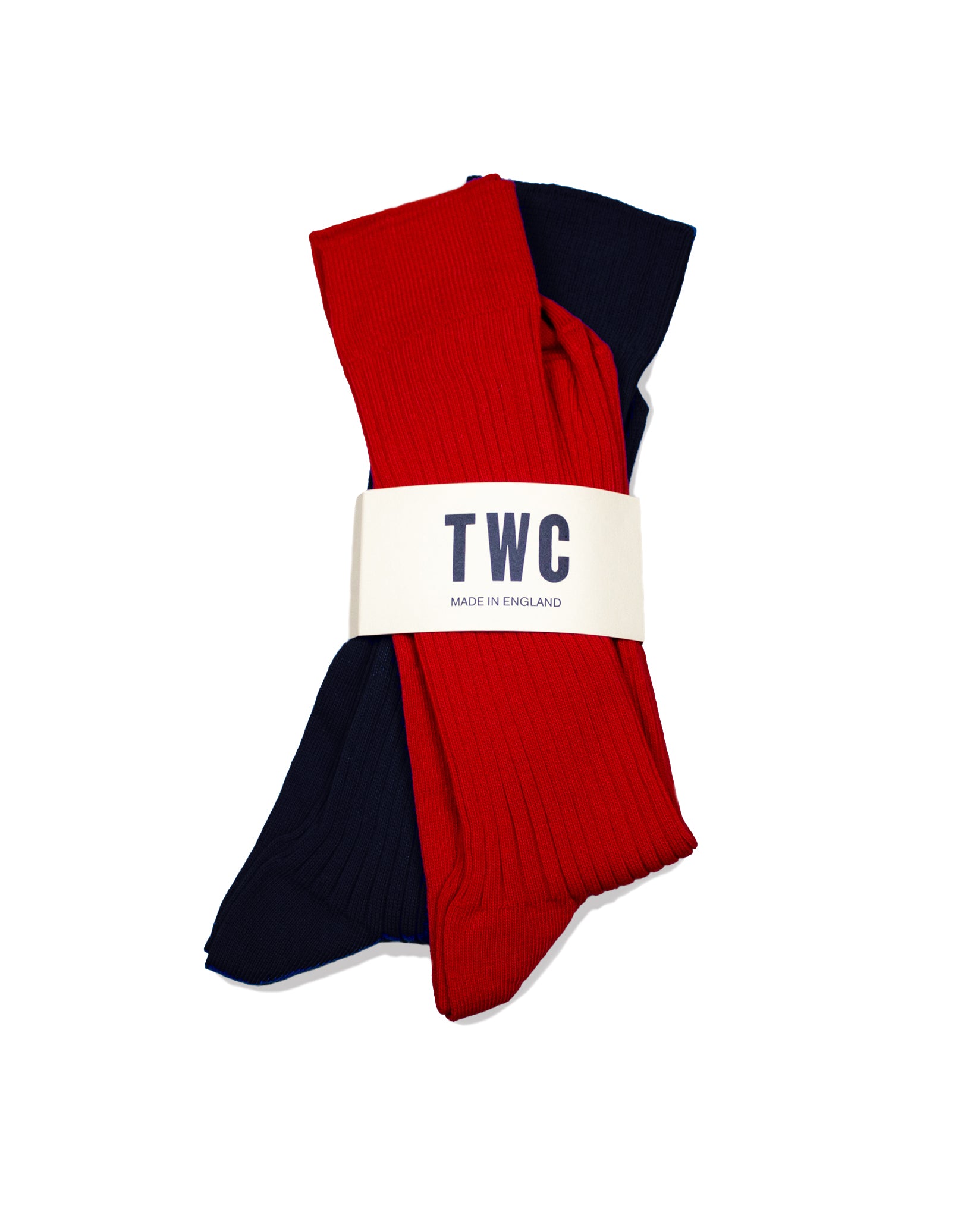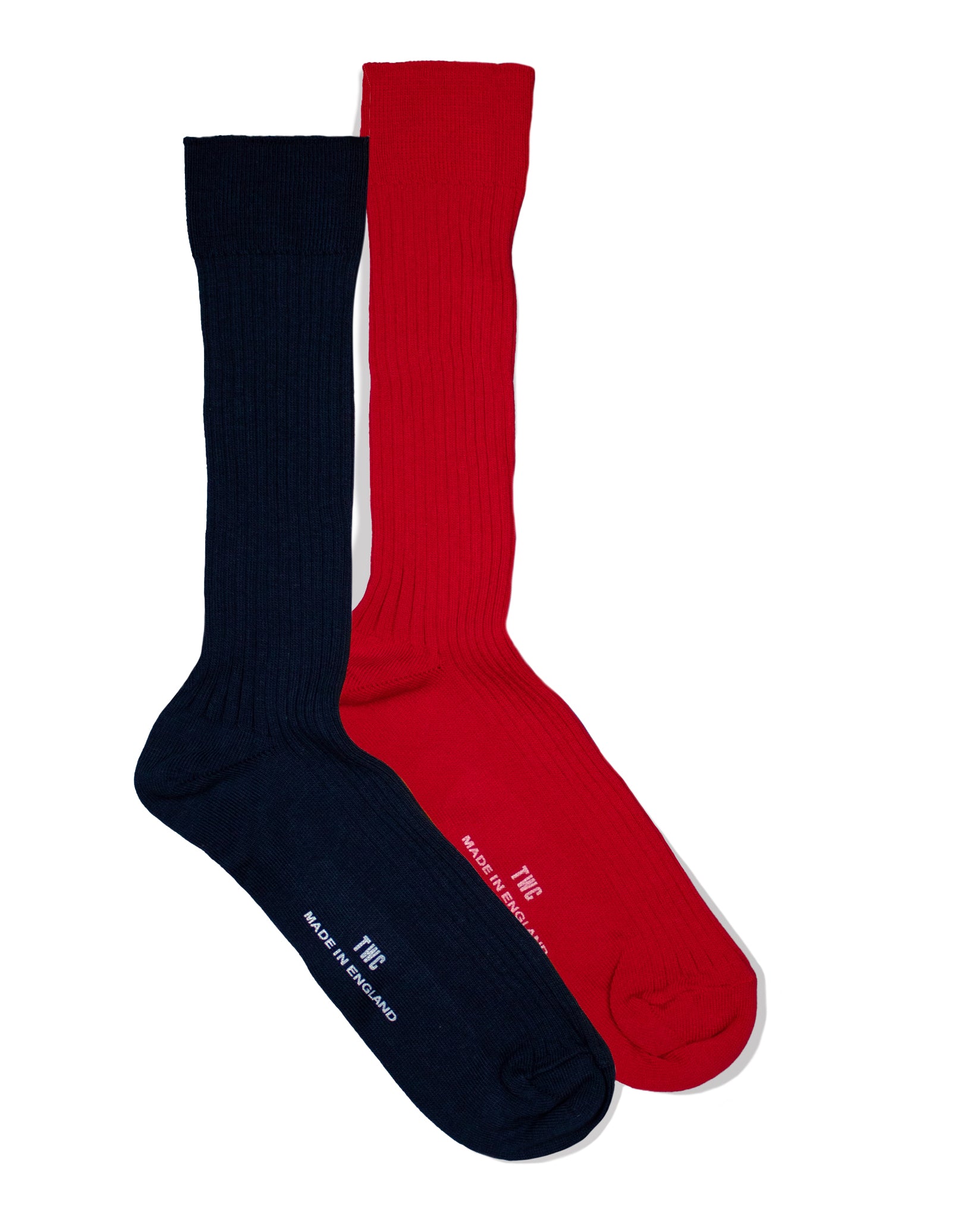 Fine Rib Cotton Socks - 2 Pack - Red & Navy