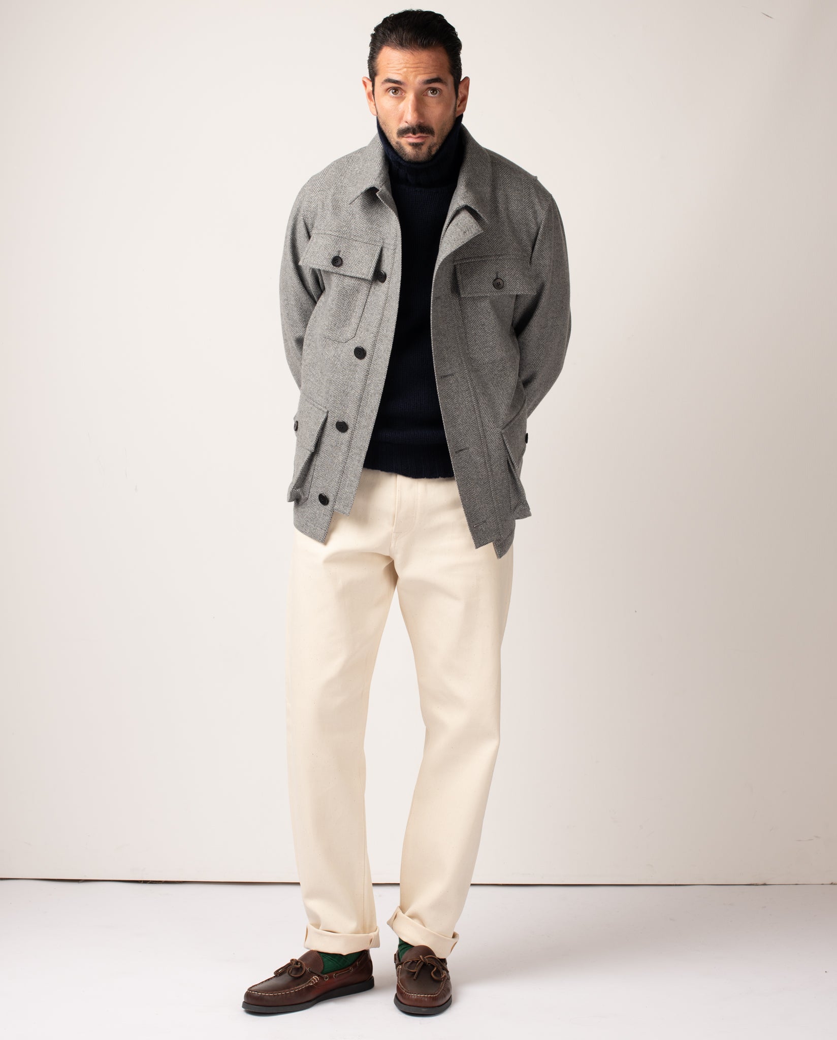 Our signature Lawrence Field Jacket returns this season in an exclusive Loro Piana bonded wool - a luxurious tonal grey herringbone cloth that feels as refined as it looks. Designed and made in England in limited numbers, it’s the epitome of understated British craftsmanship.