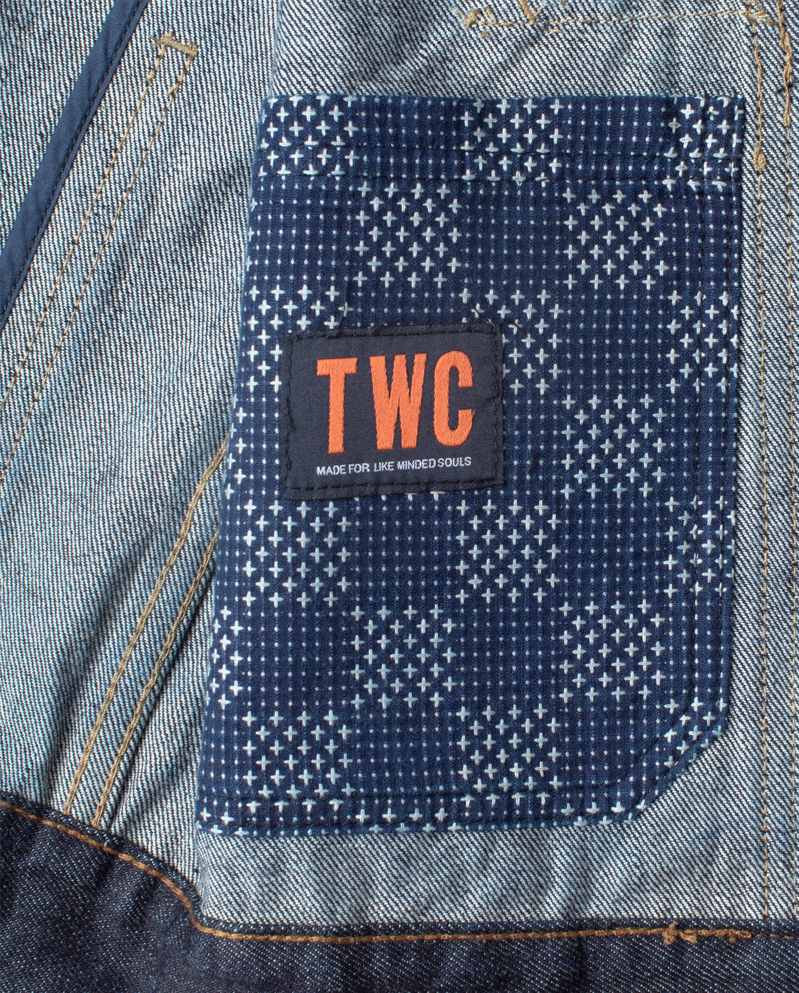 Unique Details: Finished with our signature sashiko-embroidered interior pocket thats faded beautifully from the garment washing, custom branded hardware, and tonal twill detailing at the cuffs and pocket flaps, this jacket carries the understated yet refined identity of TWC.
