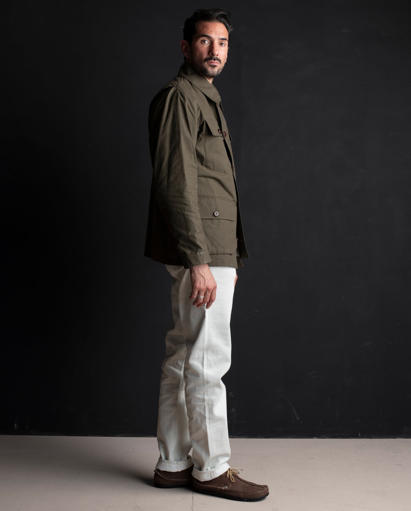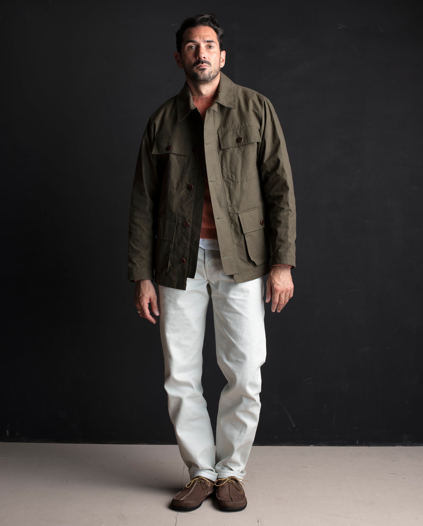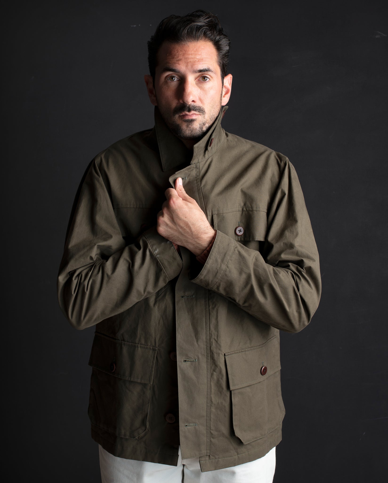 Elevate your style and embrace the elements with the Khaki Waxed Cotton Field Jacket. Whether you're in the city or the great outdoors, this jacket seamlessly combines sophistication with functionality.