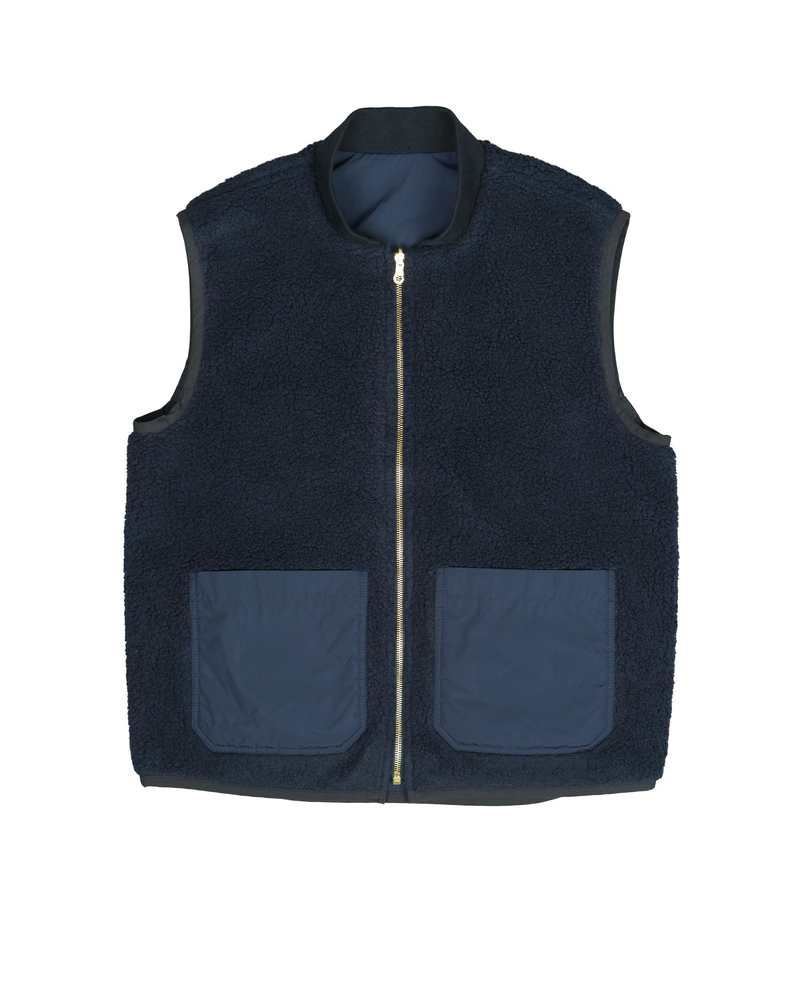 ALDWORTH REVERSIBLE GILET IN NAVY TEDDY FLEECE