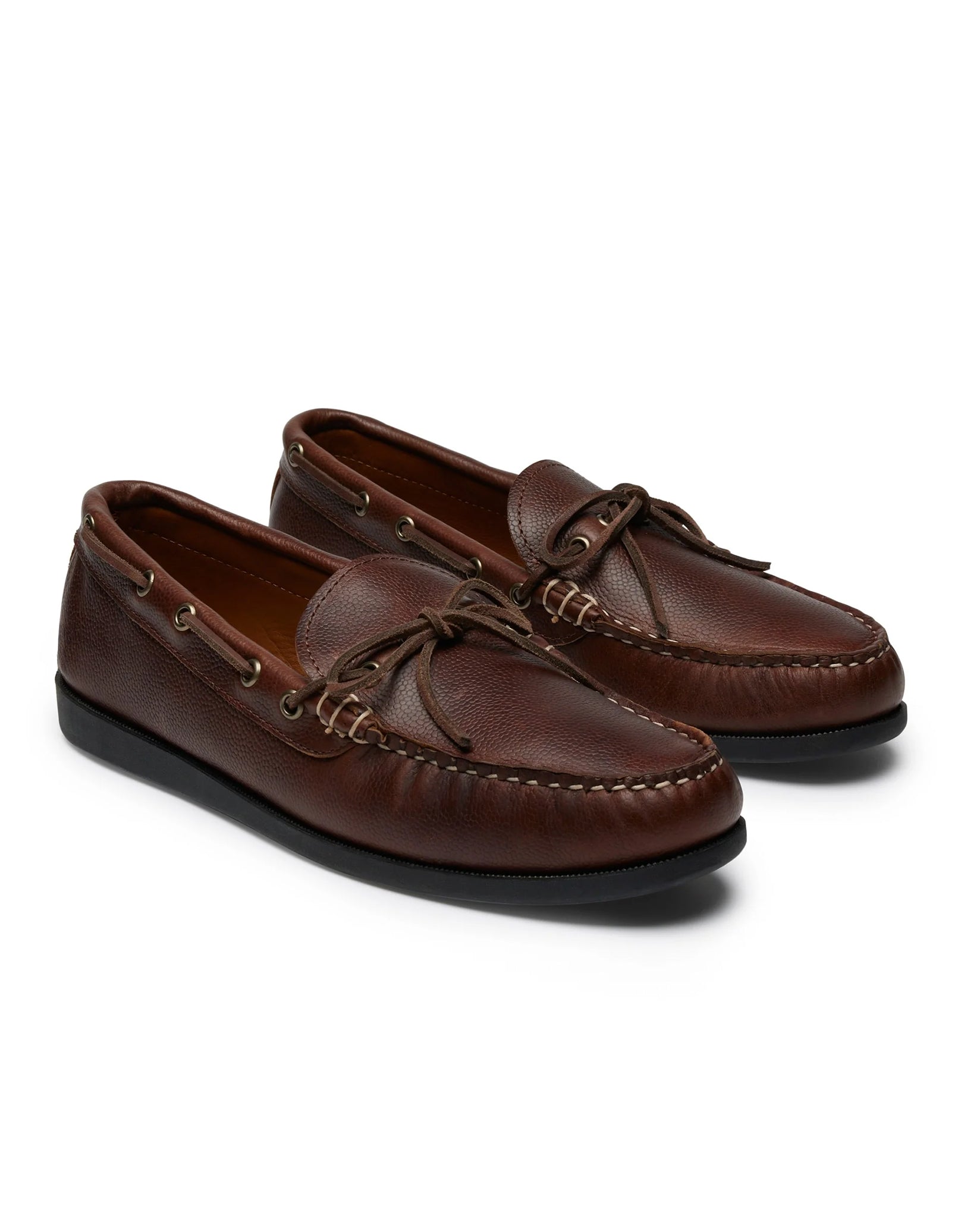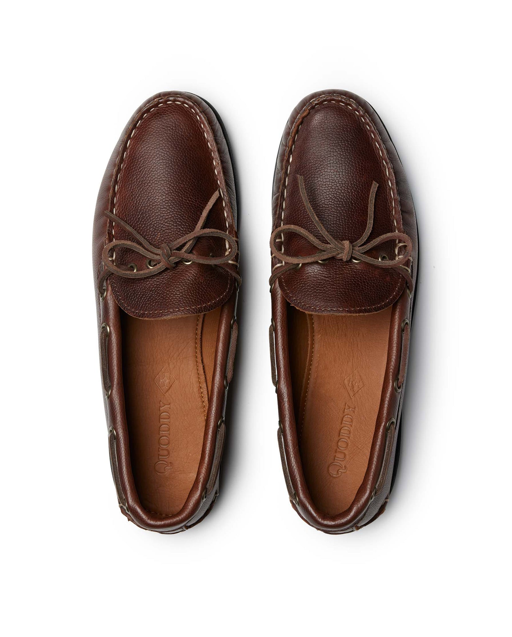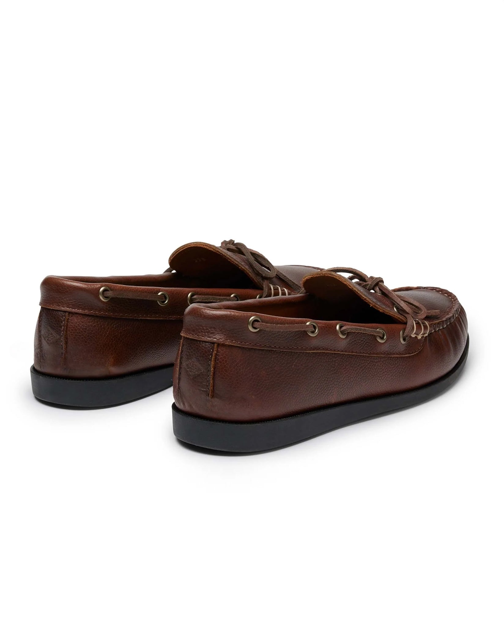A true American classic, the Quoddy Canoe Shoe is the brand’s signature silhouette - inspired by traditional moccasin construction. This edition is made from brown pebbled leather - richly textured, incredibly durable, and treated with a pull-up process that enhances its natural sheen and creates subtle colour variations unique to each pair.