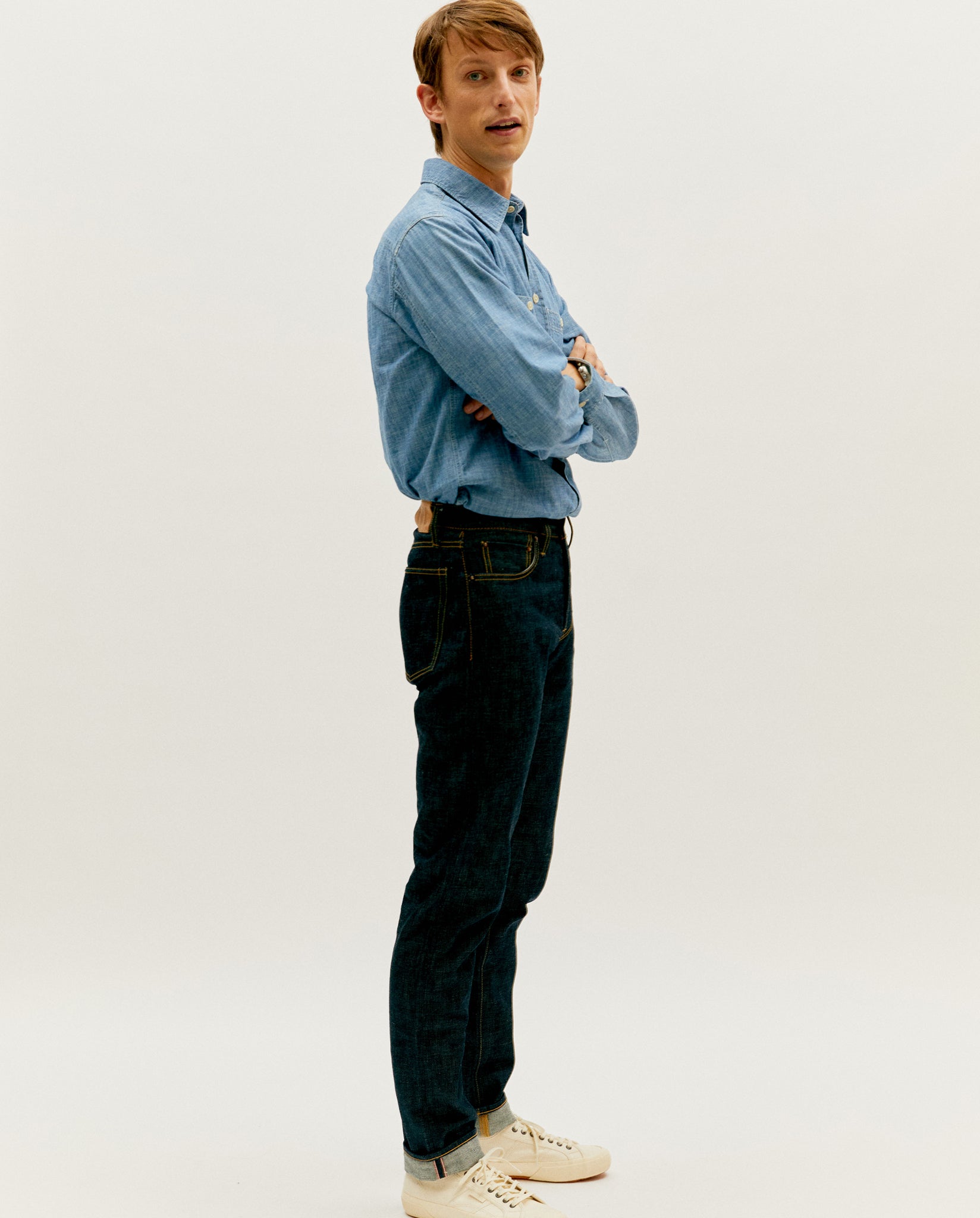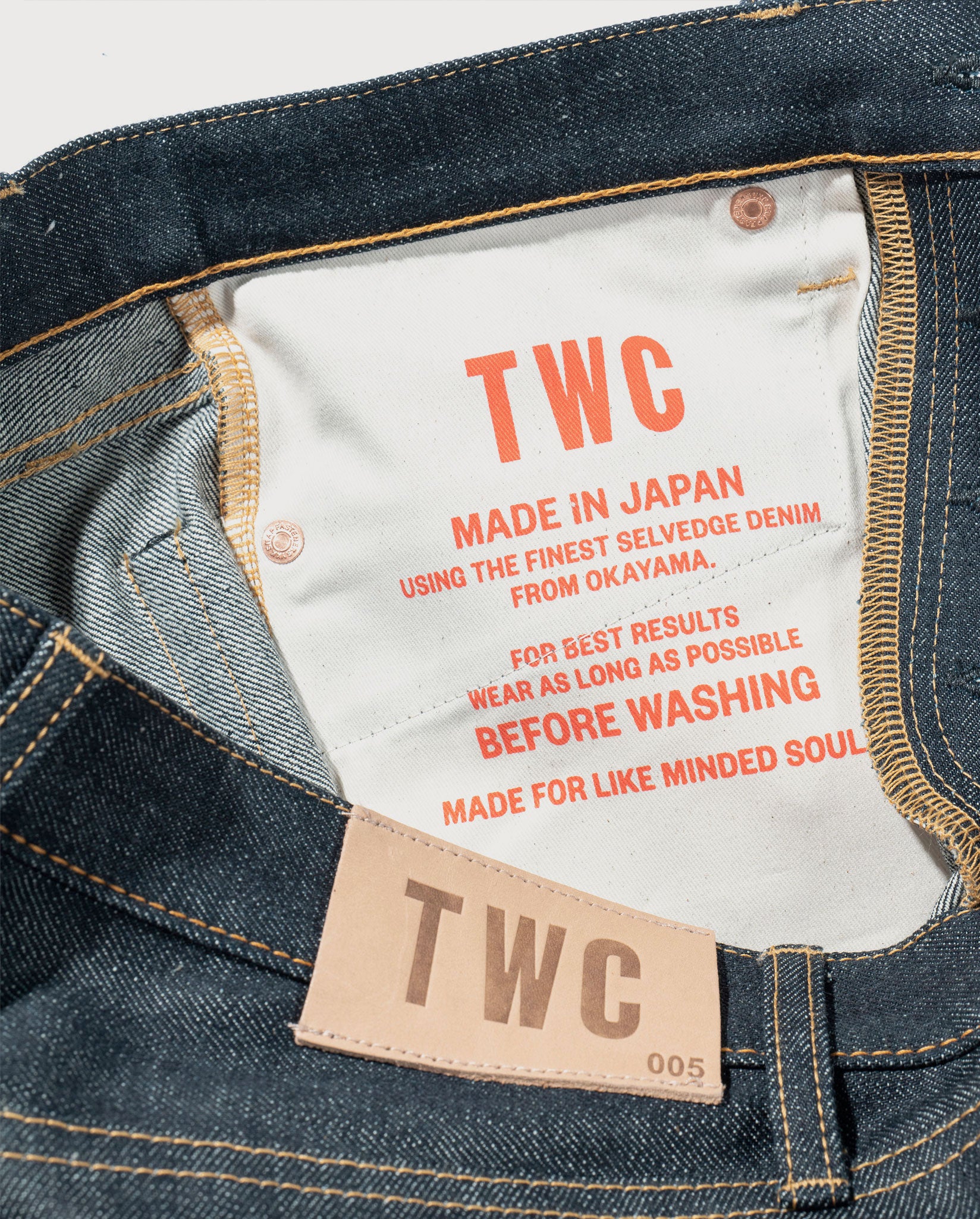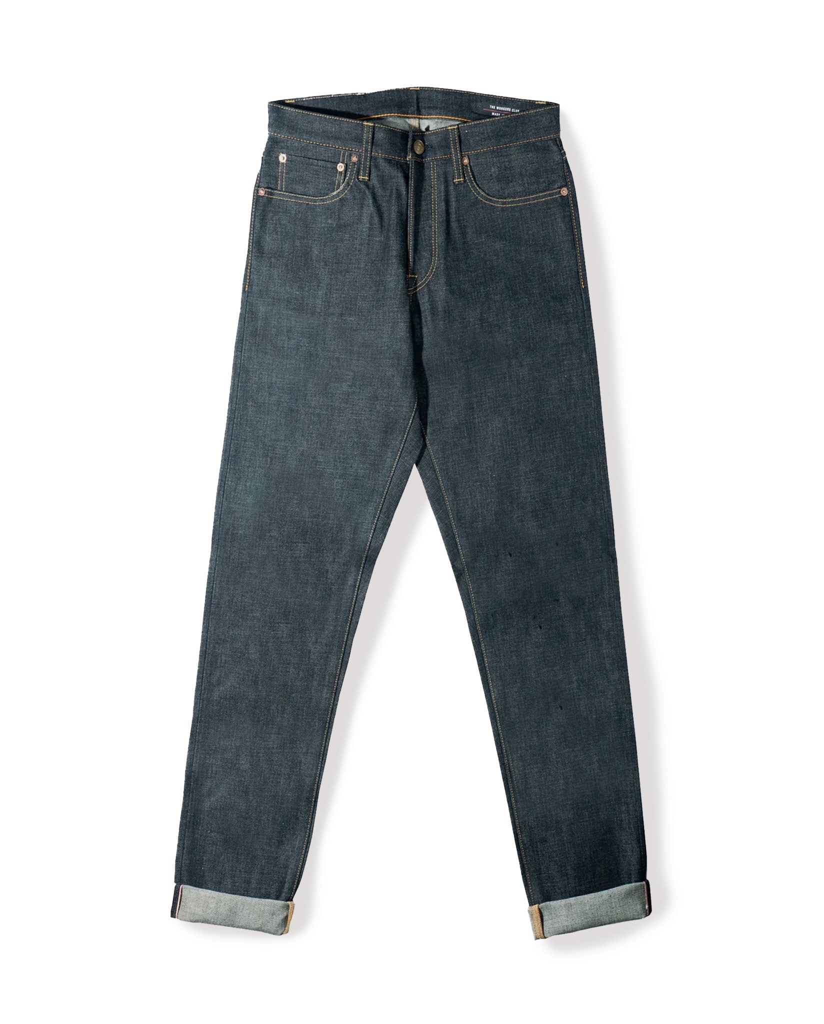 Made from narrow loom 13oz indigo raw denim and woven by the famed Japanese mill, Kuroki. Our raw indigo relaxed tapered 005 jean offers a refined and modern fit.