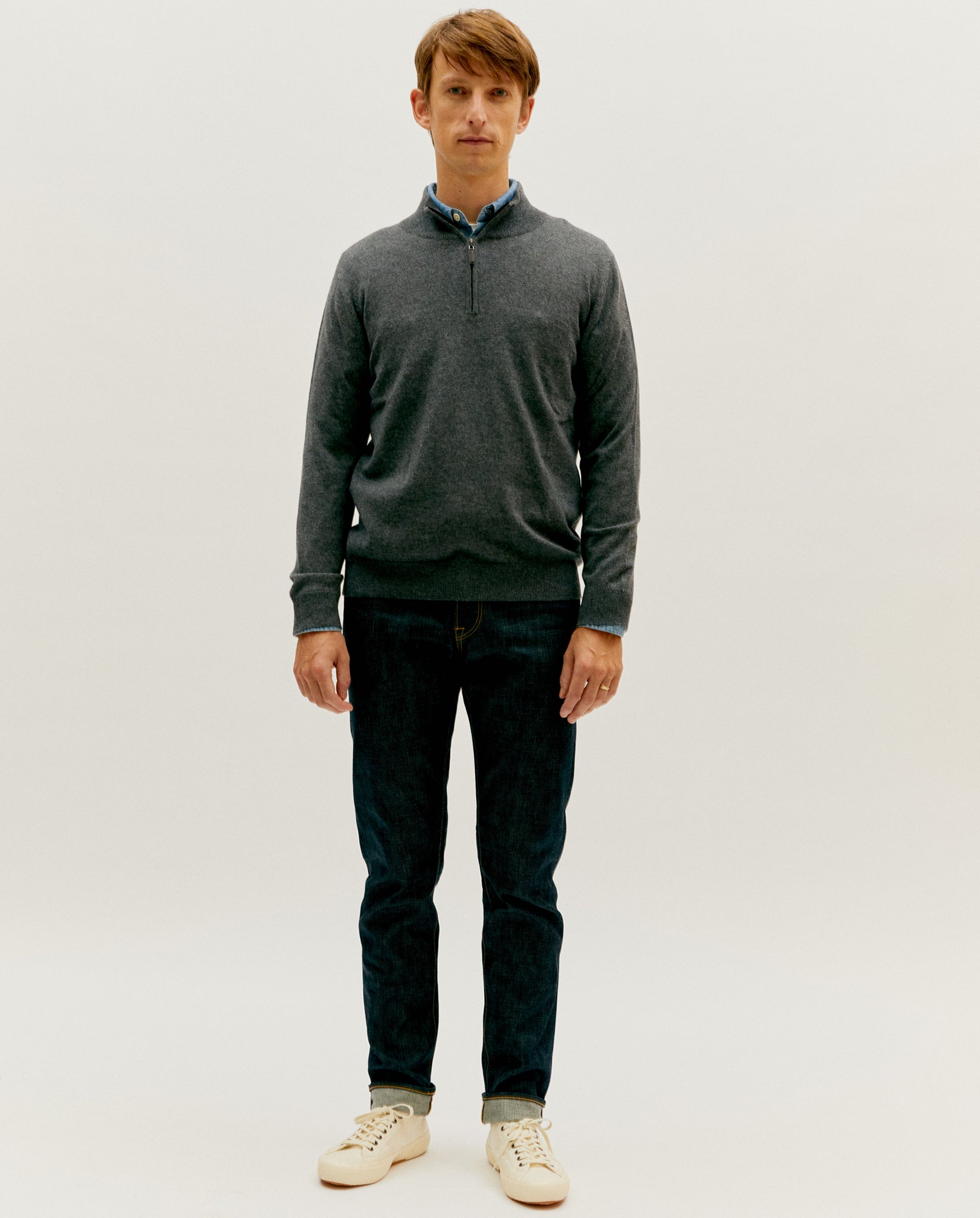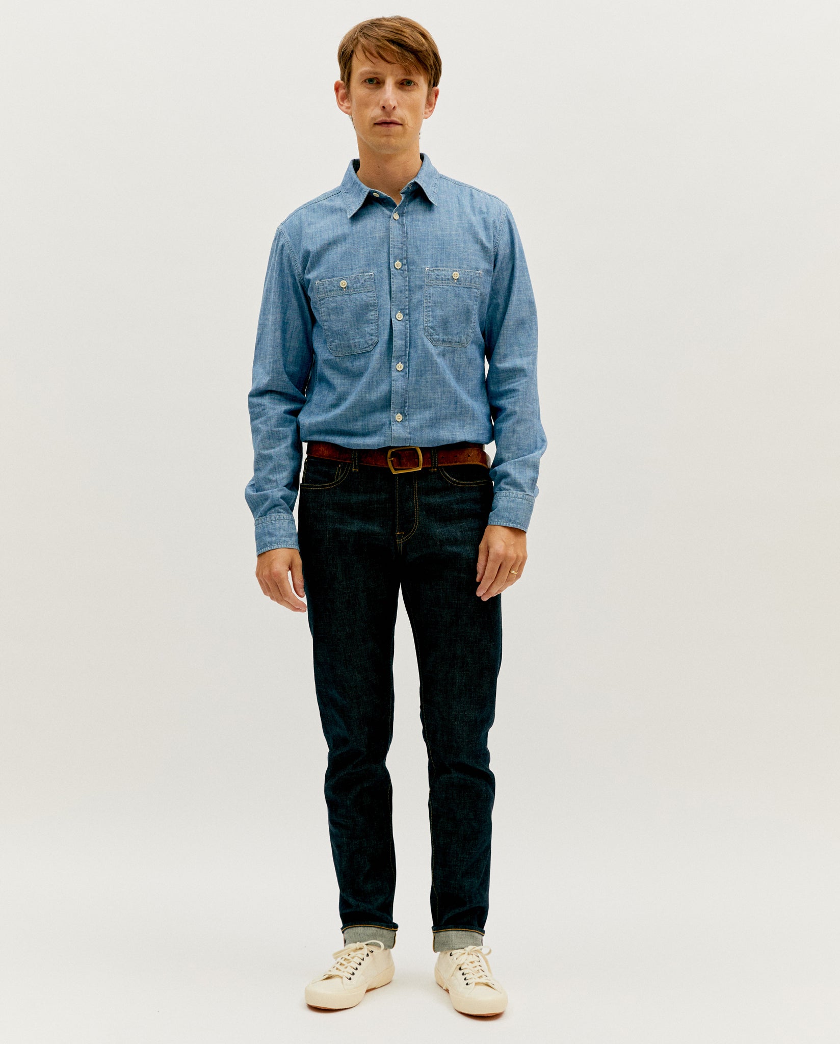 Woven with a deep rope dyed indigo warp and natural weft – but with a unique and subtle grey cast – this denim will develop fading patterns with repeated wear and the occasional wash. Fully constructed in Okayama by one of the best artisan workshops in Japan, the jeans are finished with elevated components including the classic red selvedge, branded button fly and leather patch, and chain stitching throughout.