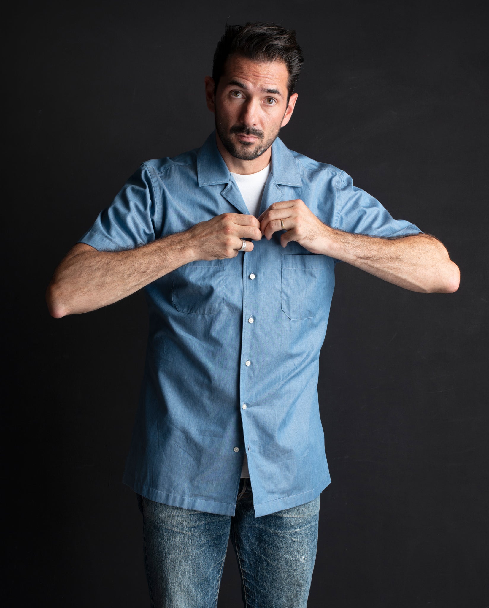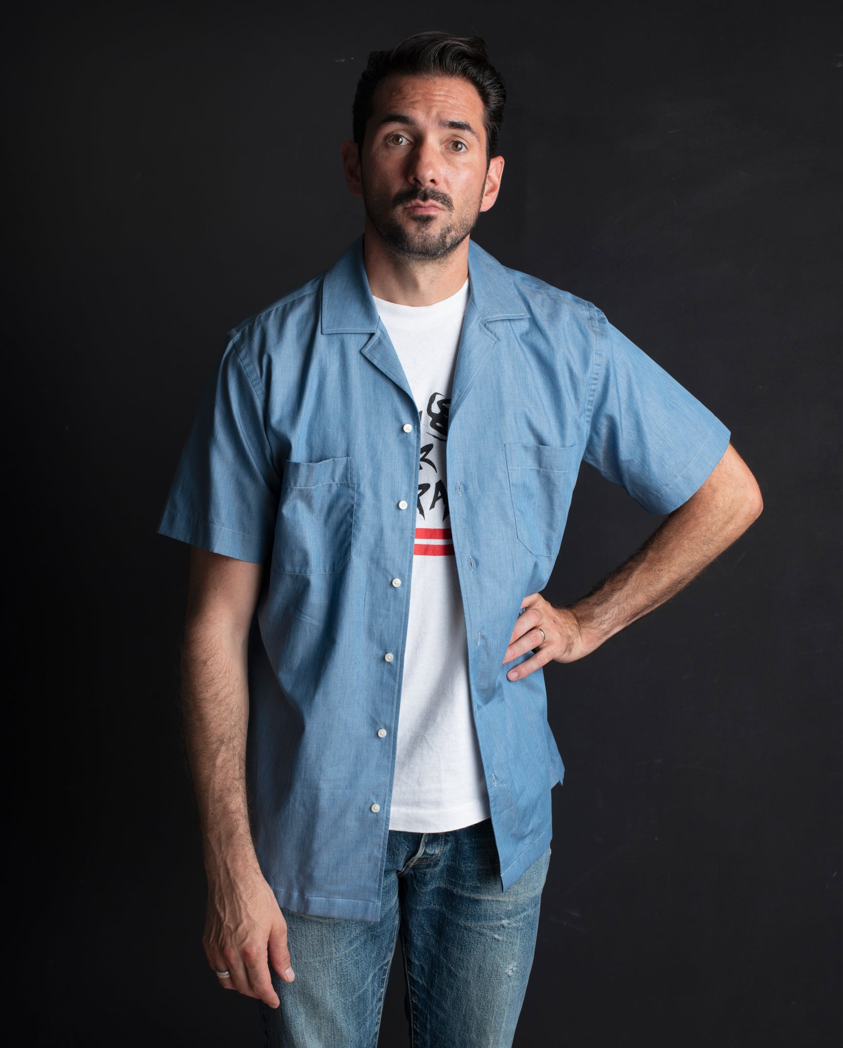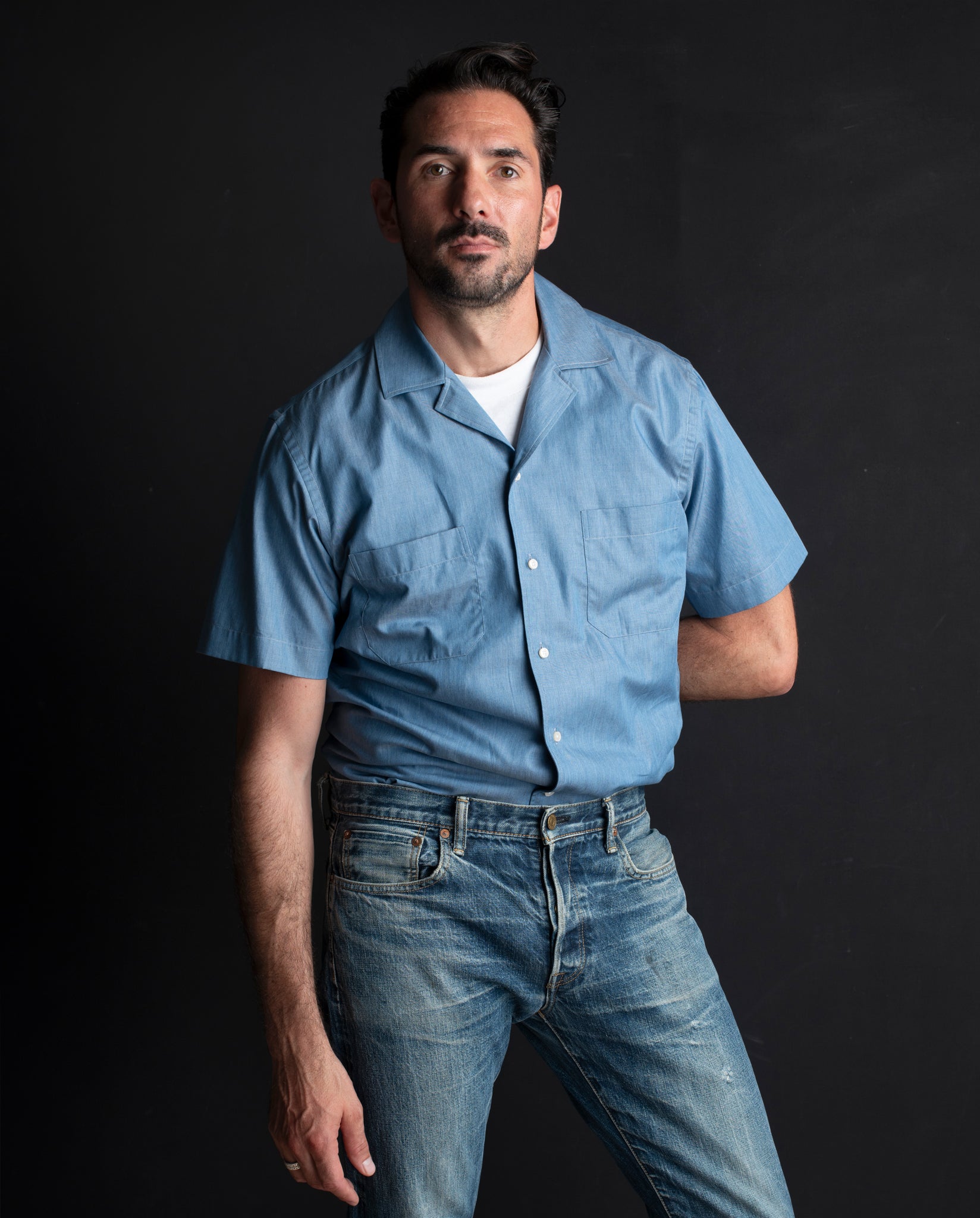 The Reuben Shirt is crafted from a luxuriously soft, lightweight chambray - a plain steel blue denim woven in Italy from 100% cotton. The fabric offers a refined handle that’s smart enough to pair with tailored trousers, yet relaxed enough to throw on over a vintage tee and our chino shorts.