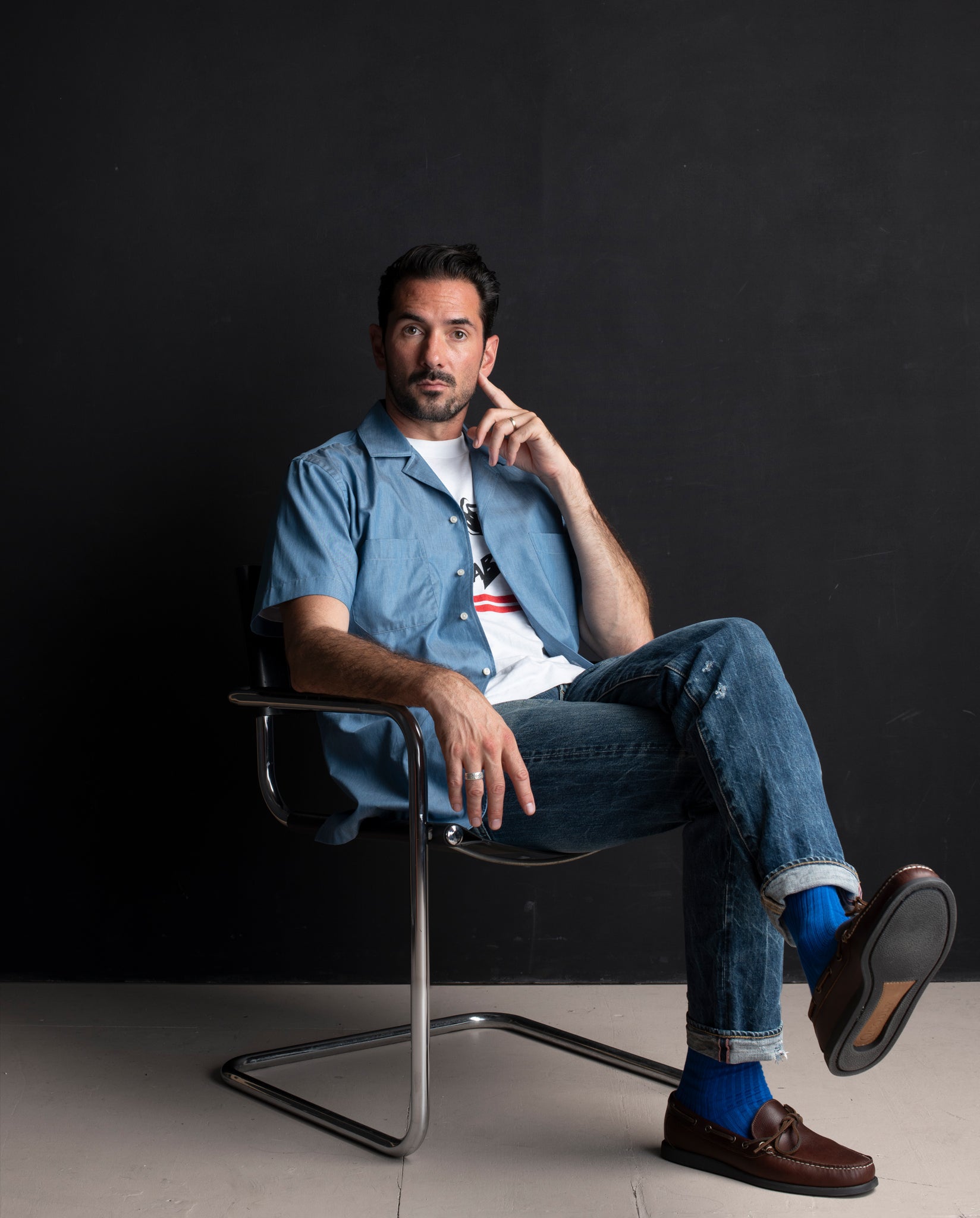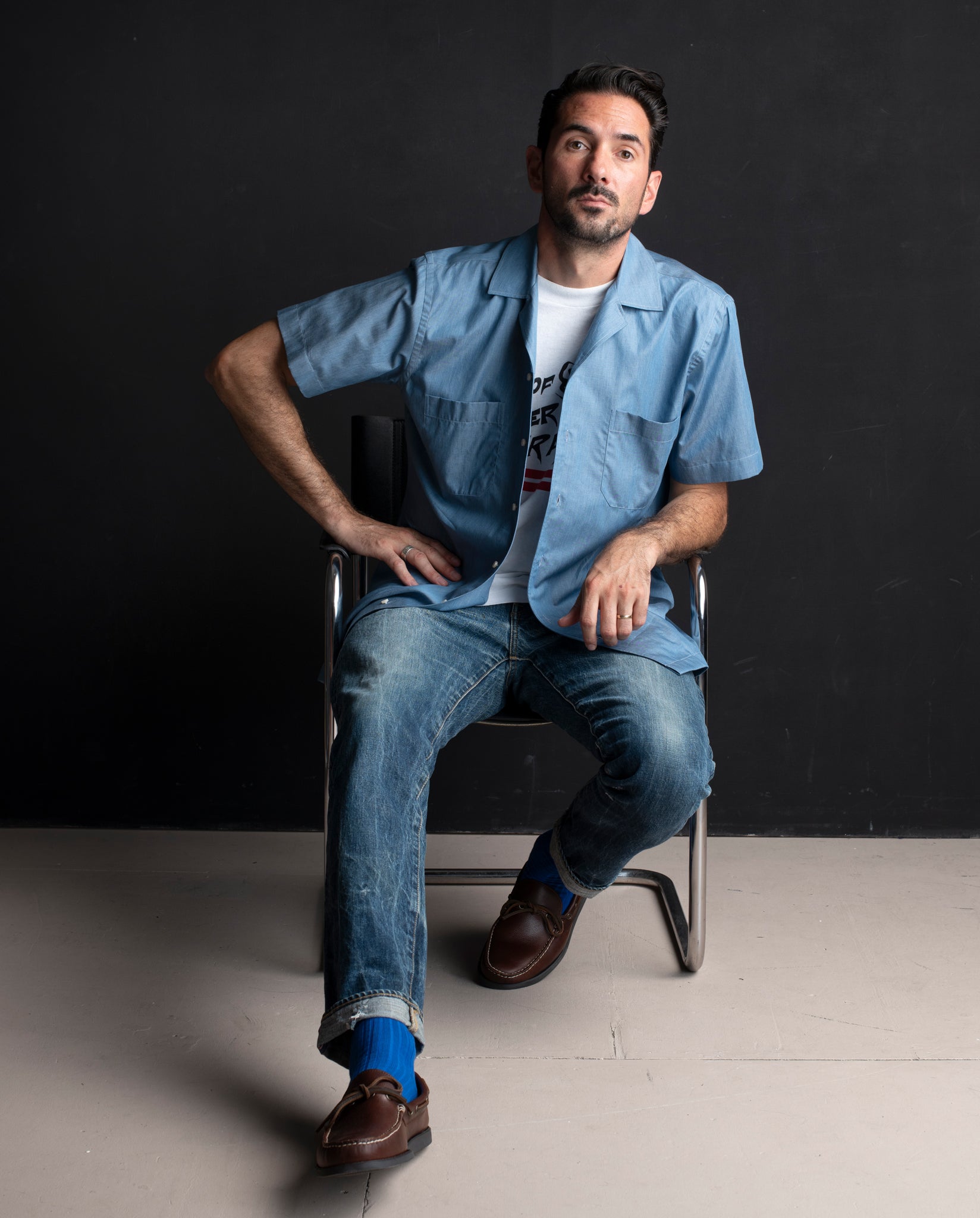 The Reuben Shirt is crafted from a luxuriously soft, lightweight chambray - a plain steel blue denim woven in Italy from 100% cotton. The fabric offers a refined ...