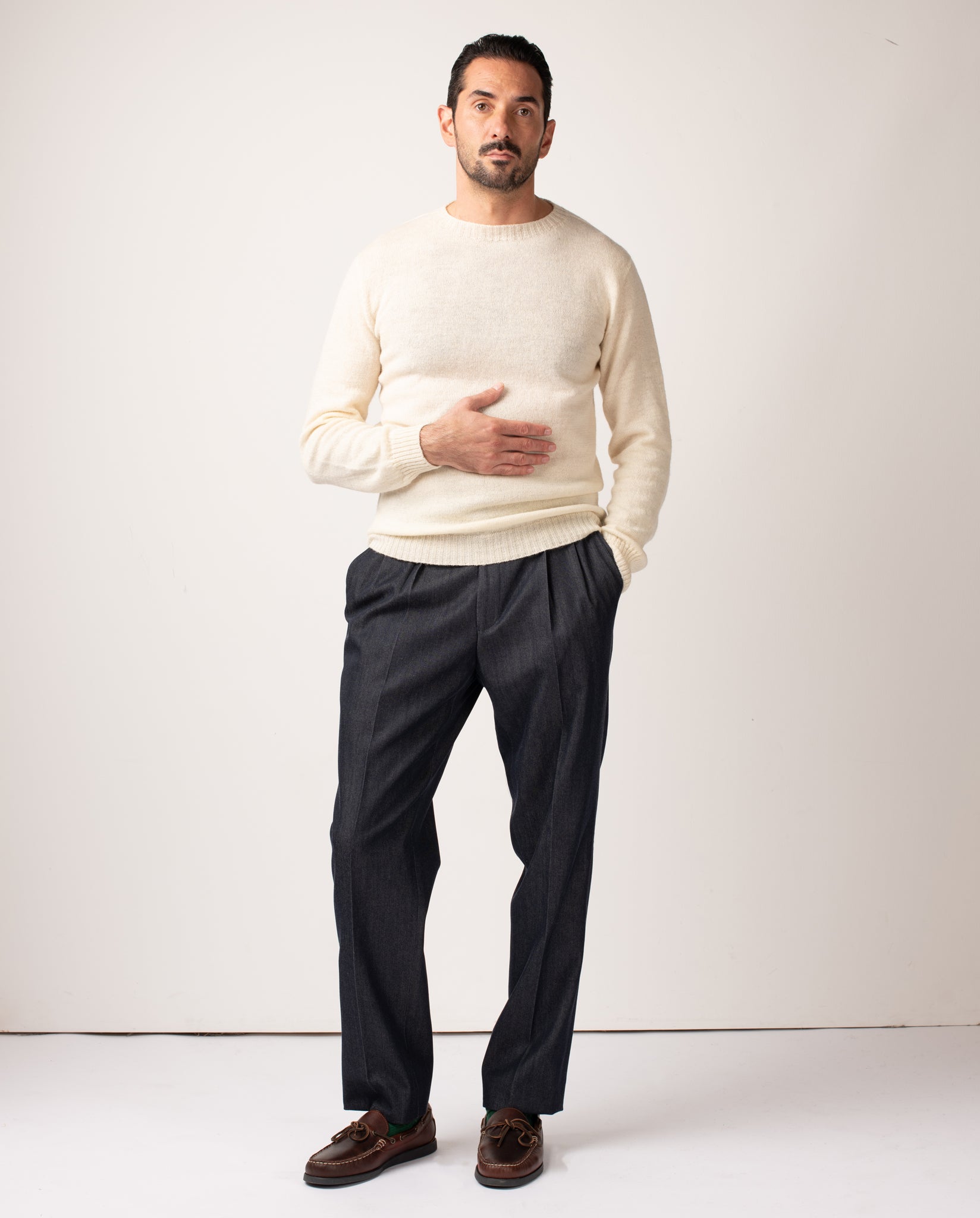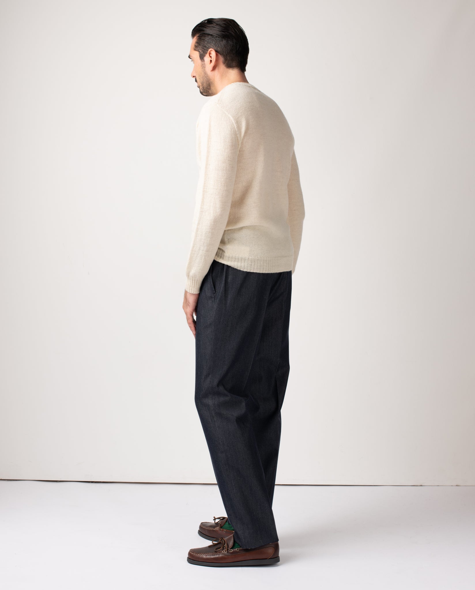 Finished with subtle saddle-stitch detailing at the shoulder, this refined crew neck exemplifies understated design and attention to detail. Every element is considered, creating a garment that’s both functional and quietly elevated.