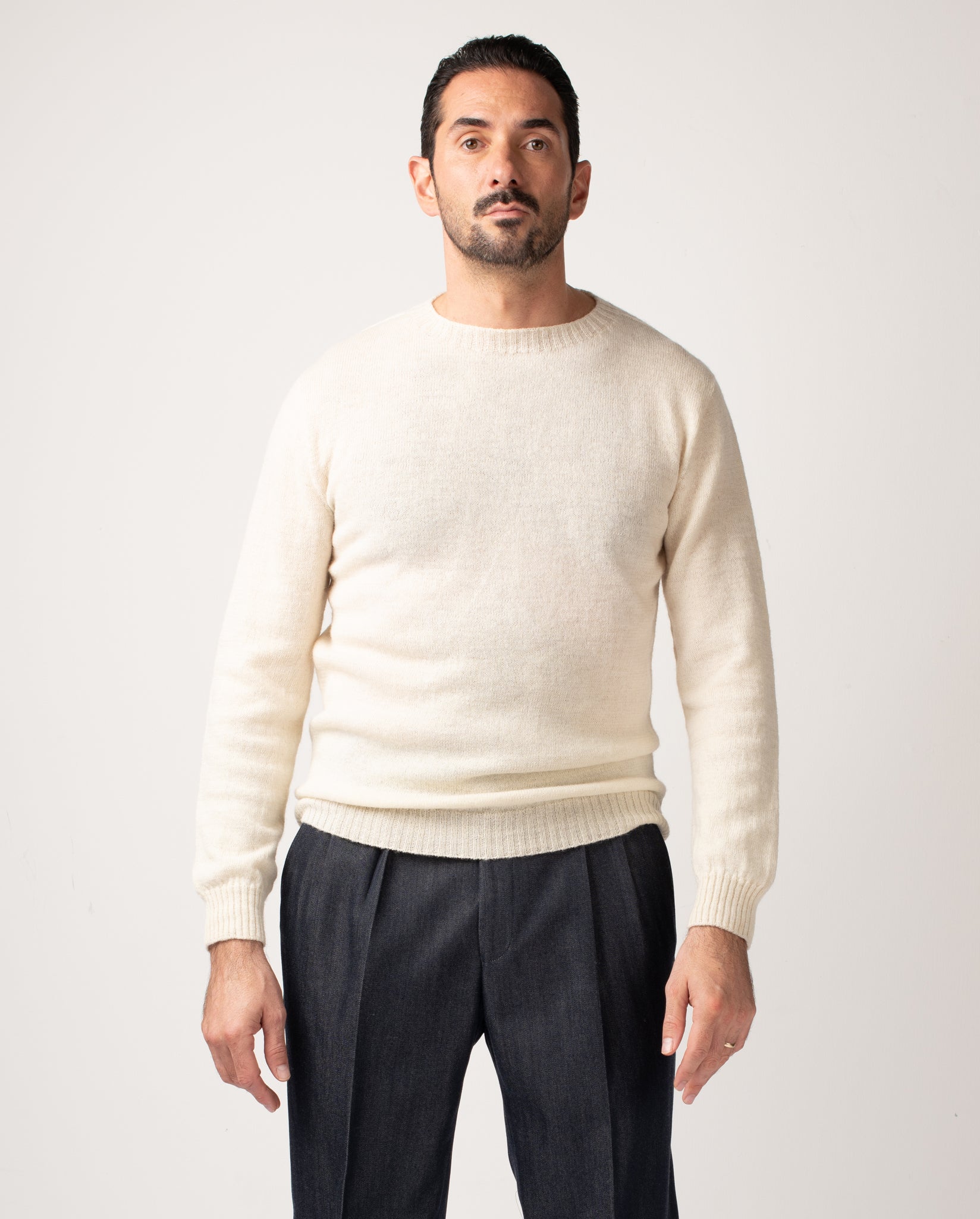 The undyed yarn celebrates the raw beauty of the fibre itself, with subtle natural variations that give every piece a unique tone and texture. The 2-ply construction provides warmth and lightness in equal measure, making this sweater an ideal layer for all seasons.
